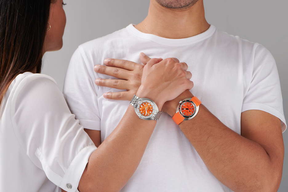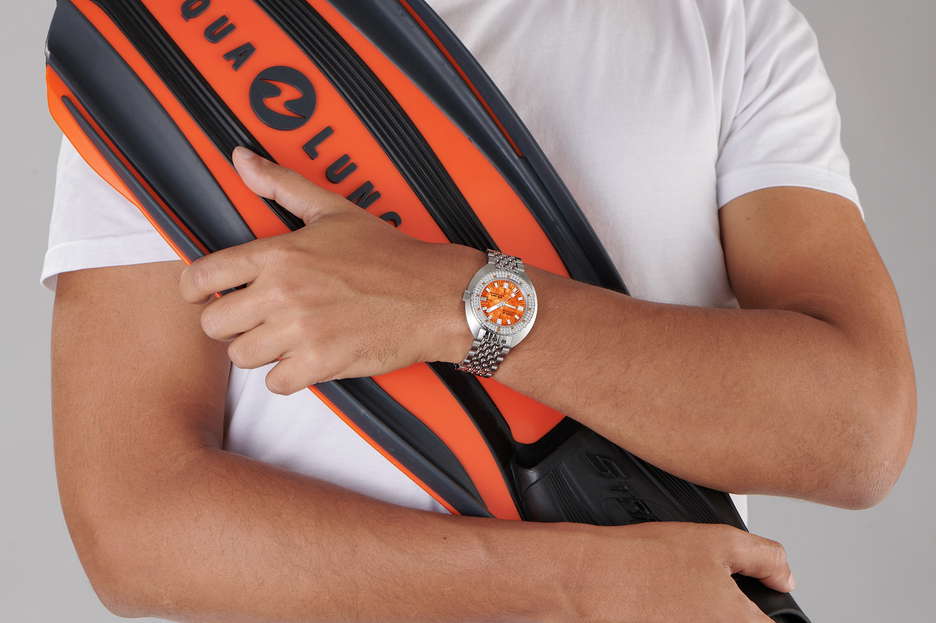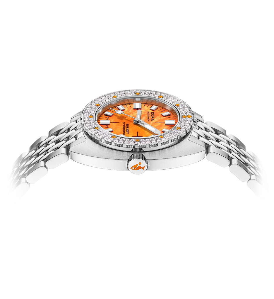 The DOXA SUB 200T Diamonds collection reinvents the iconic SUB dive watch by blending technical excellence with refined luxury. Featuring diamond-set bezels, colorful gemstones, and natural mother-of-pearl dials, each watch offers a unique, elegant design while staying true to DOXA’s adventurous spirit. The collection includes seven models in vibrant colors like orange, pink, and green, with a new Ocean Dream Pink making its debut. The DOXA SUB 200T Diamonds watches have been redesigned with a compact 39mm stainless steel case, a Swiss automatic movement, and a 200-meter water resistance. The mother-of-pearl dials add a bespoke touch, as no two are alike, and the luminescent Super-LumiNova® ensures readability in all conditions. DOXA’s signature ‘beads of rice’ bracelet complete the look, combining rugged durability with sophistication. With the DOXA SUB 200T Diamonds, DOXA brings together adventure, artistry, and luxury, appealing to those who want both performance and elegance in a dive watch. It’s a bold new chapter in the brand’s history, proving that functionality and style can coexist beautifully.
