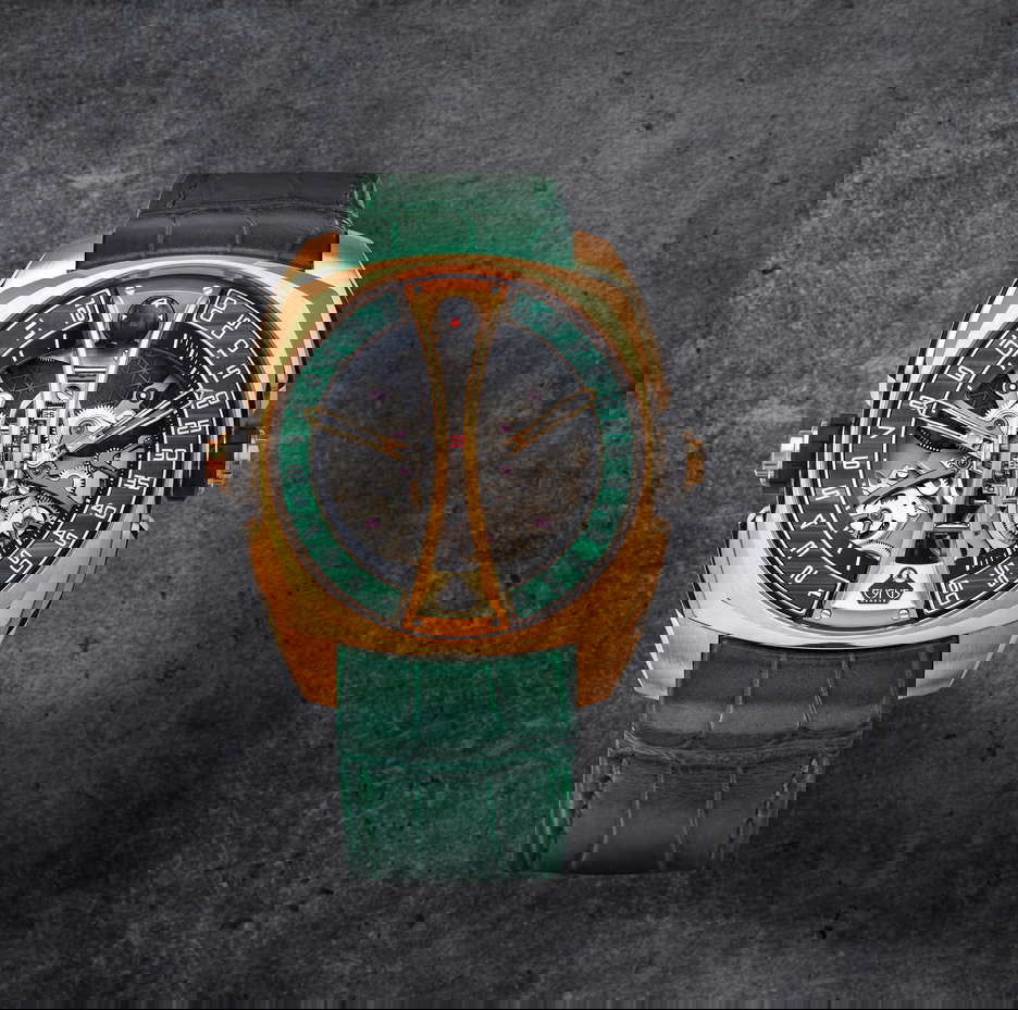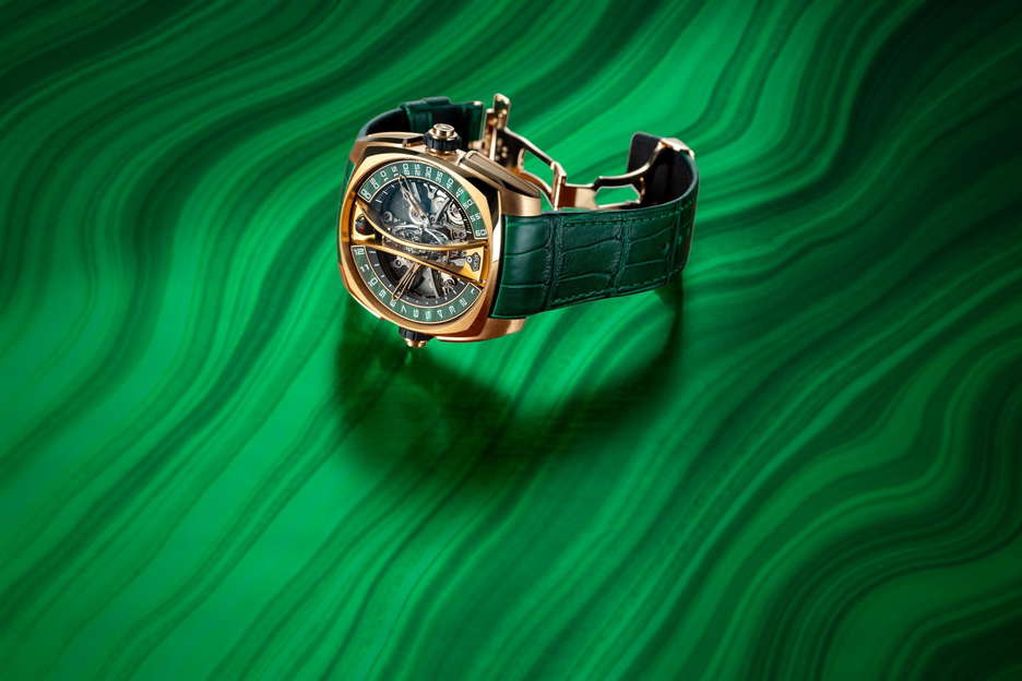 Cyrus Klepcys Vertical Skeleton Tourbillon Malachite 44mm-Rose Gold-Manual Winding