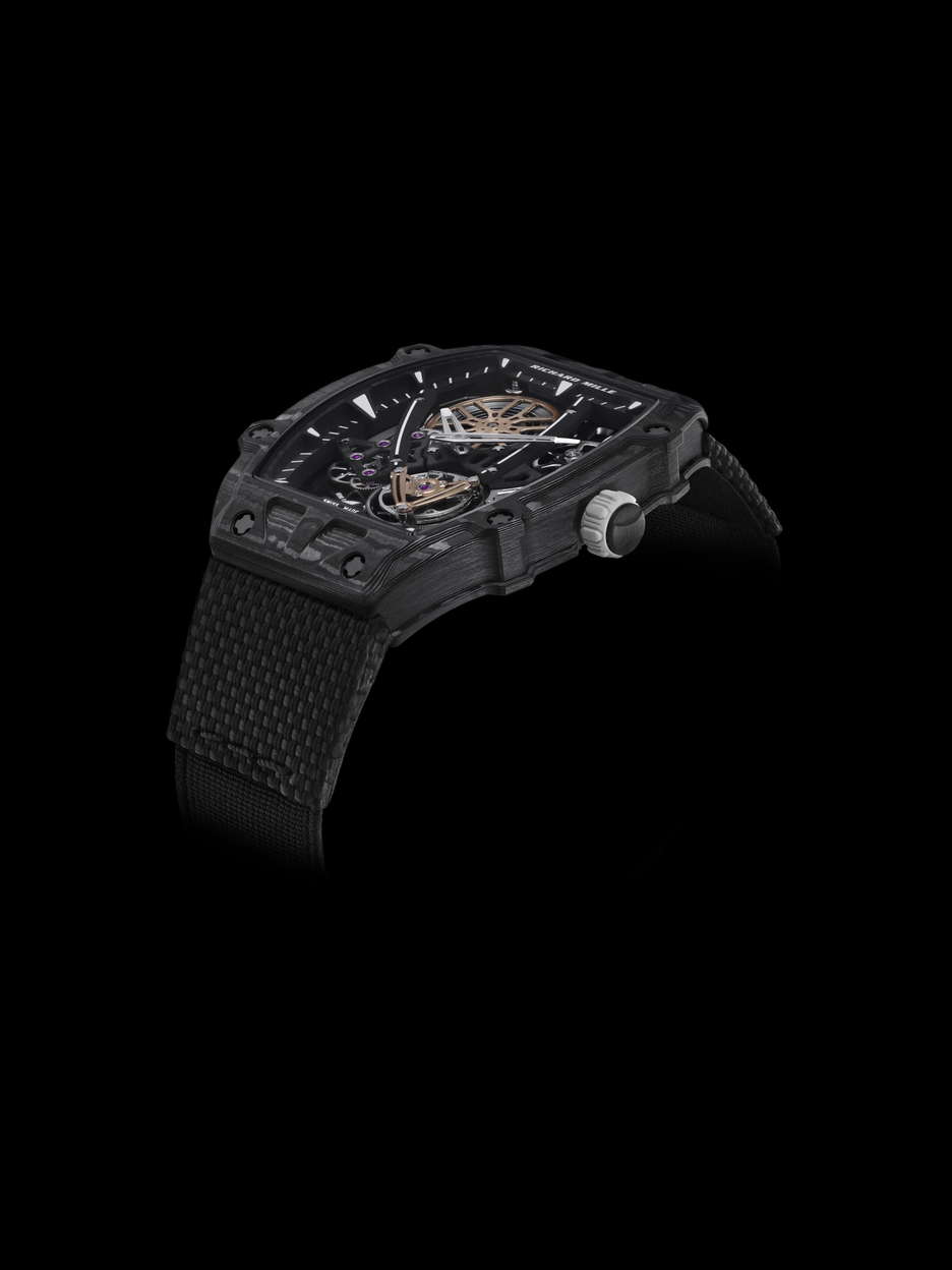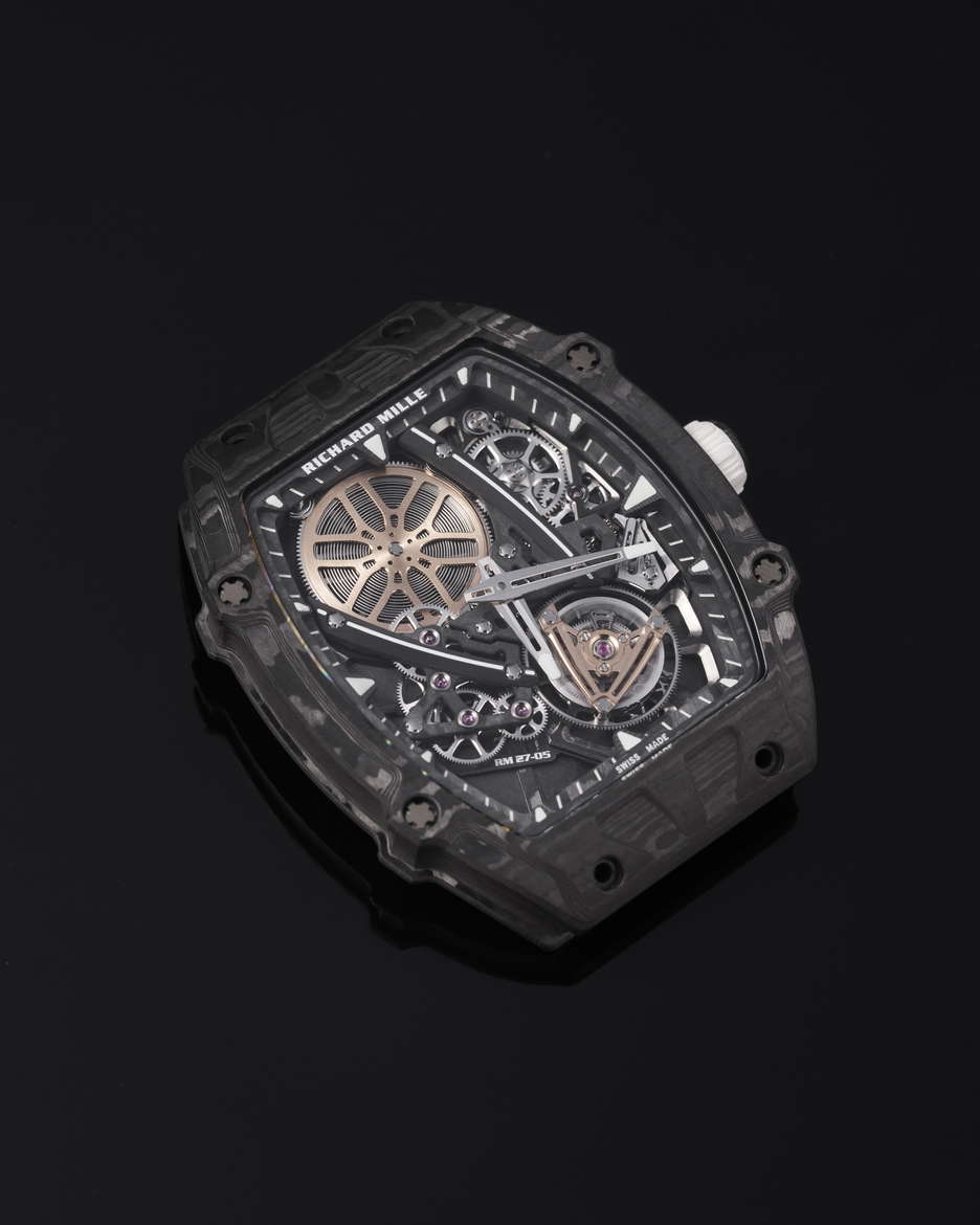 The RM 27-05 Flying Tourbillon Rafael Nadal by Richard Mille is a groundbreaking watch weighing 11.5 grams without the strap and withstanding accelerations over 14,000 g. Made from Carbon TPT® B.4, it features a flying tourbillon and barrel, and is limited to 80 pieces. The RM 27-05 Flying Tourbillon Rafael Nadal marks the evolution of a partnership between Richard Mille and Rafael Nadal that began in 2010. The RM 27-05 project, initiated in 2019, builds on previous models’ achievements in lightness and performance. Its ultra-thin RMUP-01 calibre has a 55-hour power reserve and a 3 Hz flying tourbillon. The movement is secured within a monobloc back/caseband unit, eliminating screws and optimizing strength. The RM 27-05 exemplifies technical innovation and the deep friendship between Mille and Nadal, setting a new standard in watchmaking.