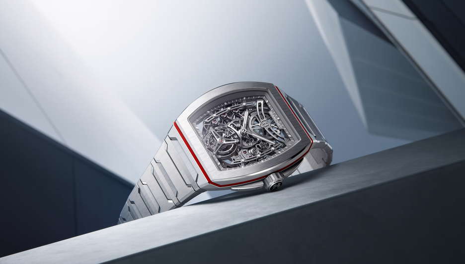 Bianchet redefines modern Haute Horlogerie with the B 1.618 UltraFino, a timepiece where precision engineering meets mathematical poetry. Crafted around the Golden Ratio (1.618), this ultra-thin timepiece houses Bianchet’s first automatic flying tourbillon movement, the UT01 caliber, entirely made from titanium. At just 8.9mm thick, its curved tonneau-shaped case follows a 1.2mm lug-to-lug curvature, delivering an effortlessly ergonomic fit that balances elegance with resilience. Strength and refinement converge as the UltraFino defies convention, with an impressive 5,000Gs shock resistance and 5 ATM water resistance, ensuring durability without compromise. Available in two expressions, one showcases a skeletonized movement with exquisite hand-finishing, while the other features the Golden Diamond dial, a modernized Clou de Paris motif. Both variants incorporate Bianchet’s signature rubber seam between the bezel and case middle. At the heart of the watch, the UT01 movement is an ultra-thin feat of engineering at 3.85mm thick and 8 grams light, featuring one of the rarest horological constructions—an automatic flying tourbillon in titanium with a Fibonacci-inspired gold rotor. Every component adheres to 1.618 proportions, reinforcing Bianchet’s commitment to aesthetic perfection. Additionally, the fully integrated titanium bracelet, a rare feat for a tonneau-shaped case, enhances the watch’s seamless fluidity, while a vulcanized rubber strap with a titanium deployant buckle provides an alternative refined look. The B 1.618 UltraFino stands as a testament to the Golden Ratio’s enduring influence, fusing ultra-thin tourbillon mastery, contemporary sportswear ergonomics, and architectural beauty. Whether skeletonized or featuring the Golden Diamond dial, it remains a bold statement of proportion, performance, and timeless elegance.