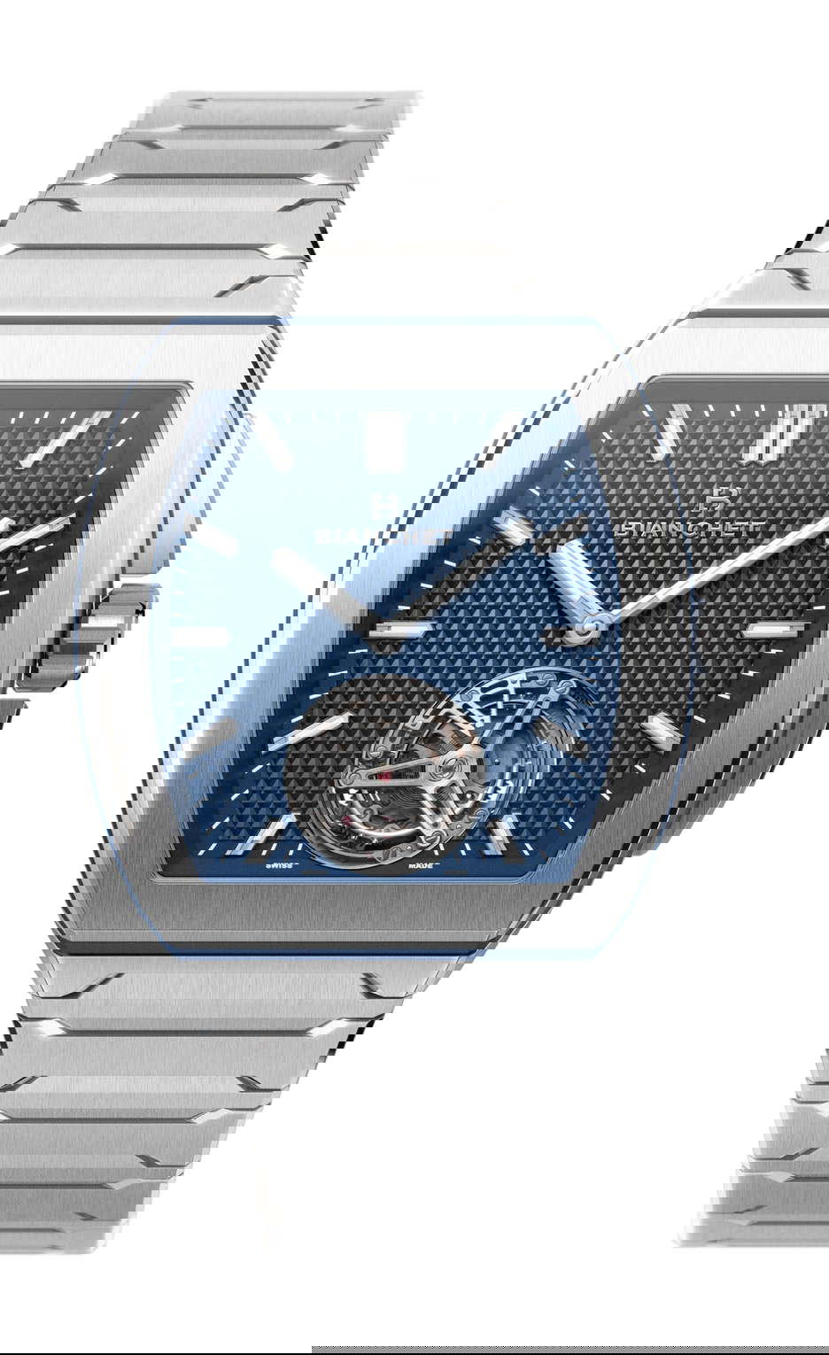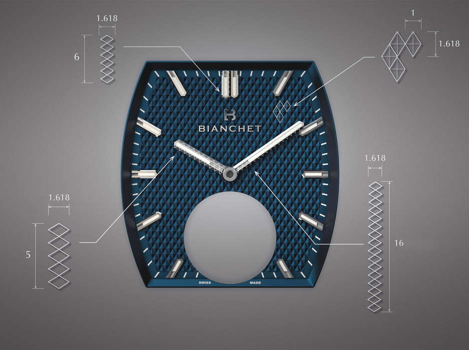 Bianchet redefines modern Haute Horlogerie with the B 1.618 UltraFino, a timepiece where precision engineering meets mathematical poetry. Crafted around the Golden Ratio (1.618), this ultra-thin timepiece houses Bianchet’s first automatic flying tourbillon movement, the UT01 caliber, entirely made from titanium. At just 8.9mm thick, its curved tonneau-shaped case follows a 1.2mm lug-to-lug curvature, delivering an effortlessly ergonomic fit that balances elegance with resilience. Strength and refinement converge as the UltraFino defies convention, with an impressive 5,000Gs shock resistance and 5 ATM water resistance, ensuring durability without compromise. Available in two expressions, one showcases a skeletonized movement with exquisite hand-finishing, while the other features the Golden Diamond dial, a modernized Clou de Paris motif. Both variants incorporate Bianchet’s signature rubber seam between the bezel and case middle. At the heart of the watch, the UT01 movement is an ultra-thin feat of engineering at 3.85mm thick and 8 grams light, featuring one of the rarest horological constructions—an automatic flying tourbillon in titanium with a Fibonacci-inspired gold rotor. Every component adheres to 1.618 proportions, reinforcing Bianchet’s commitment to aesthetic perfection. Additionally, the fully integrated titanium bracelet, a rare feat for a tonneau-shaped case, enhances the watch’s seamless fluidity, while a vulcanized rubber strap with a titanium deployant buckle provides an alternative refined look. The B 1.618 UltraFino stands as a testament to the Golden Ratio’s enduring influence, fusing ultra-thin tourbillon mastery, contemporary sportswear ergonomics, and architectural beauty. Whether skeletonized or featuring the Golden Diamond dial, it remains a bold statement of proportion, performance, and timeless elegance.