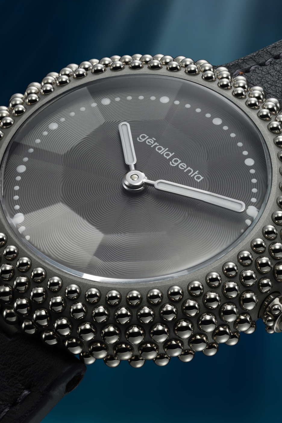 The latest collection from the revived watchmaking icon Gérald Genta introduces three evocative watches inspired by the 1994 Oursin. The Oursin, originally sketched by Gérald Genta after a family vacation in Corsica, features a unique aesthetic with a round case and deeply convex sides studded with beads. The 2024 Oursin models reinterpret Genta’s vision for a contemporary audience, maintaining the complexity, audacity, and distinctiveness of the original design. Each model has a convex titanium case studded with 223 beads, available in white gold, rose gold and diamonds, or yellow gold. The first model in the Gentissima Oursin collection, the Gentissima Oursin Gray, is characterized by its stark elegance and adaptability. This model features an anthracite dial with a tone-on-tone color palette, a finely etched guilloché dial, and polished round white-gold case beads. Its design allows it to blend seamlessly into various environments while also standing out as a neo-baroque style statement when needed. The anthracite-dial model is ideal for wearers with a chameleonic streak, ready to transform from a discreet wrist companion to a bold fashion statement. At the heart of the Gentissima Oursin collection is the automatic-winding GG-005, based on the Zenith Elite, a high-performance movement from the renowned Le Locle manufacture de la haute horlogerie. This iteration of the Elite has been customized for the Oursin, with a rotor reshaped in the form of an octagon and bas-relief beads sculpted along the periphery of the mass. The Elite movement, launched around the same time as the historical Oursin in 1994, adds a touch of symmetry and historical significance to these contemporary masterpieces.