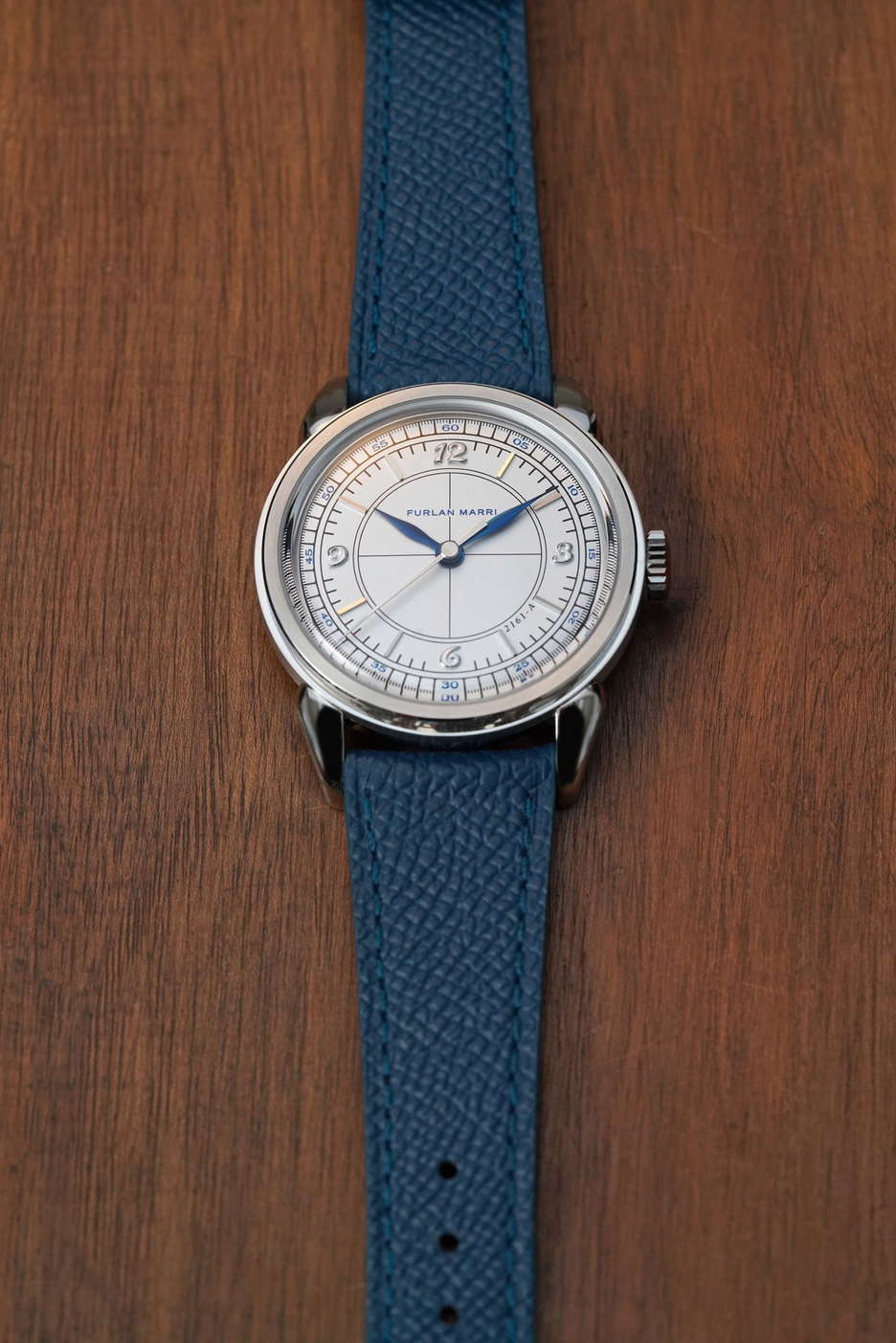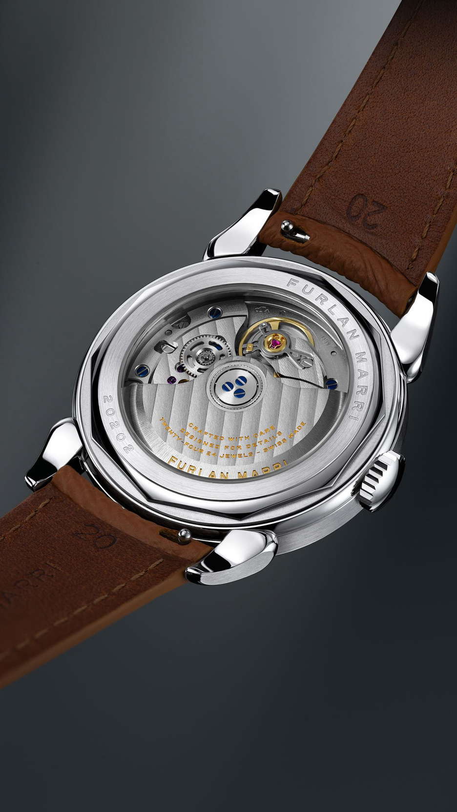 In June 2022, Furlan Marri launched their first mechanical watch, the “Black Sector,” featuring a self-winding movement by La Joux-Perret. This marked a shift from their initial mecaquartz models. Following its success, they introduced three new models: Salmon Sector, Grey Sector, and White Sector, each with distinct dials and finishes. The self-winding movement, made in La Chaux-de-Fonds, Switzerland, features a 68-hour power reserve and high-end finishes. The steel case undergoes careful assembly and detailed finishings, with special attention paid to details like cow-horn-shaped lugs and engraved brand markings. The watch comes with two straps, French and Italian leather, and is presented in a travel-style box. These models join Furlan Marri’s permanent collection.