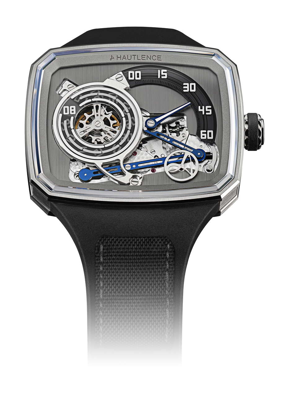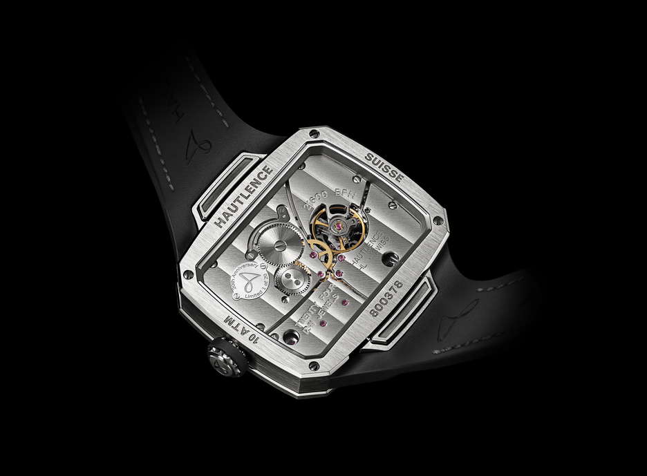To commemorate two decades of innovation and boundary-pushing in the world of Haute Horlogerie, Hautlence reaffirms its commitment to a philosophy where design and mechanical artistry reign. The HLXX, a special anniversary edition, pays homage to the brand’s inaugural creation, the HL, which shook the industry with its unconventional features—a TV-shaped case, jumping hours disk, and retrograde minutes hand. Made from grade 5 titanium, the HLXX’s case maintains the iconic TV silhouette while receiving modern updates. With dimensions of 37.0 x 45.0 x 11.75 mm, it features a water resistance of 10 ATM and integrates a quick-release strap system. The dial captivates with its deconstructed layout, showcasing the jumping hour and retrograde minutes in distinct zones illuminated by Super-LumiNova®. Inspired by locomotives, the HLXX’s intricate lever system orchestrates the synchronized movement of the retrograde minutes hand and jumping-hour mechanism. Globolight® numerals on a tinted sapphire minutes track add a contemporary flair, while a rotating Möbius logo reminds us of time’s fleeting nature. Powering this display is the Hautlence A20 caliber, a manual-winding movement that debuted two decades ago. Decorated with côtes-de-Genève stripes and a screwed plaque denoting its anniversary status, the HLXX is a limited edition of 20 pieces, marking the culmination of Hautlence’s pioneering journey with the original HL caliber.