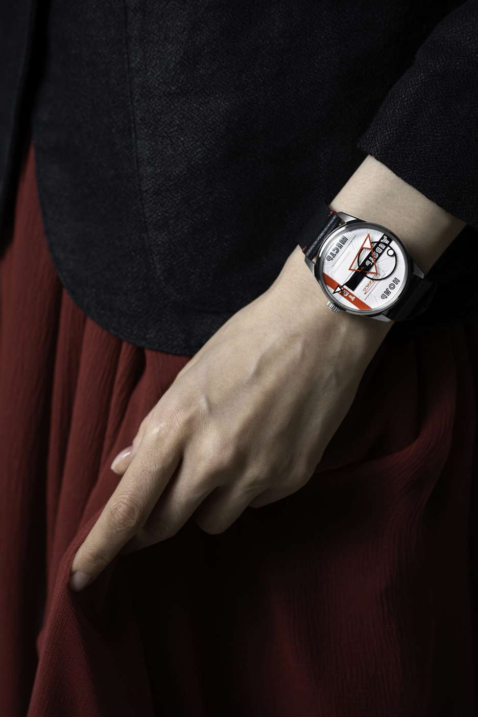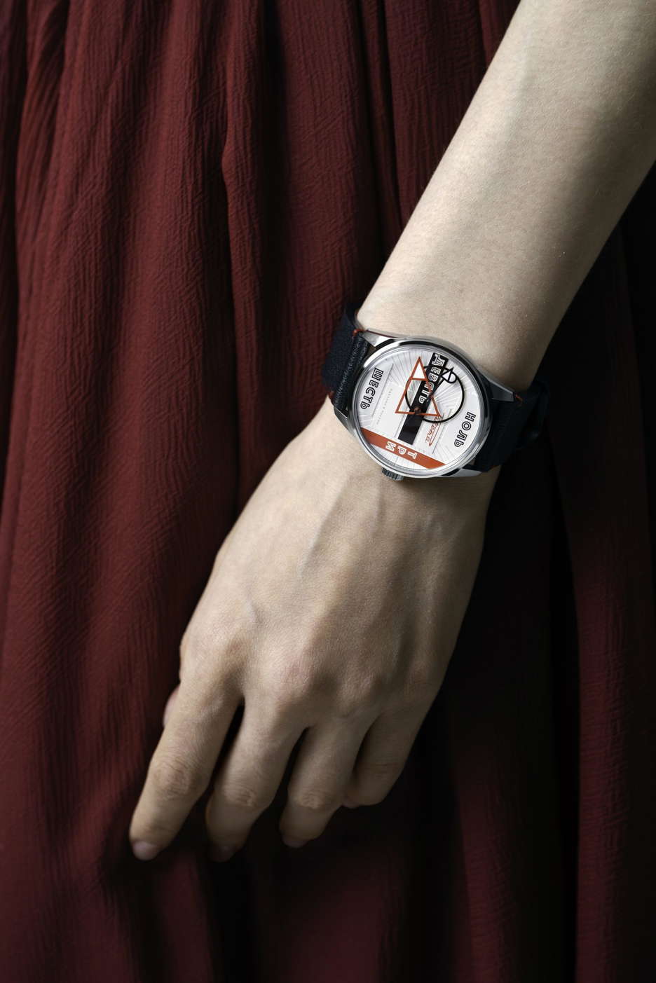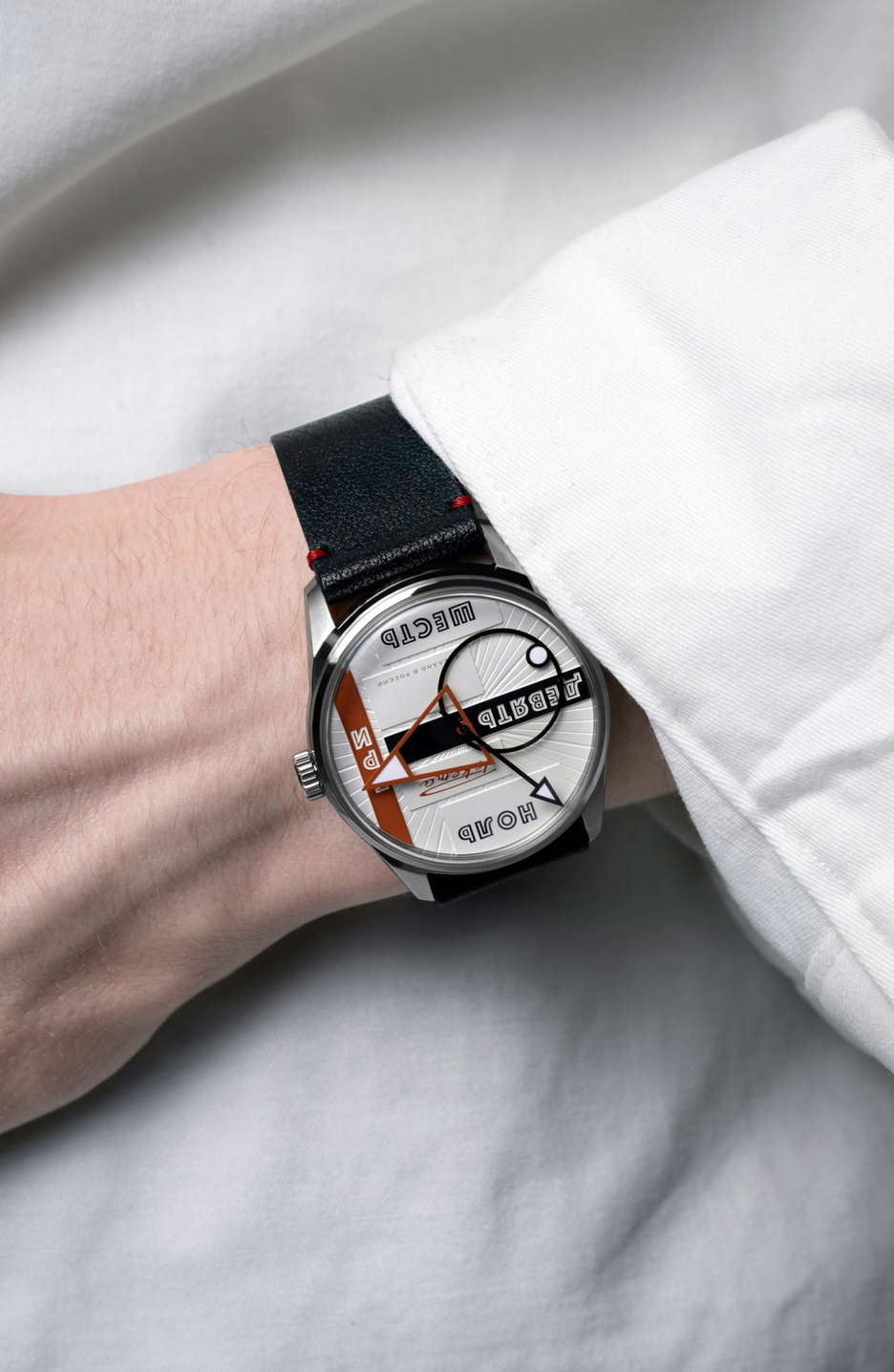 The Raketa “Avant-Garde” 0292 watch represents a significant evolution from its original model, characterized by the iconic red triangular hand. This new version features a multi-layered dial, an intricate case, and enhanced hands with Super-LumiNova glow for visibility in the dark. A key design innovation includes the replacement of traditional numbers with words: zero, three, six, nine. The watch combines three primary avant-garde colors—red, white, and black—with a geometric aesthetic of hands and fonts, creating a unique and ever-changing art composition with each glance. The abstract geometrical shapes on the dial are powered by a Raketa automatic movement, crafted in St. Petersburg. The transparent case back allows one to admire the beauty and harmony of the movement in action, reinforcing the concept of “art in motion” by offering endless interpretations and meanings with every view.