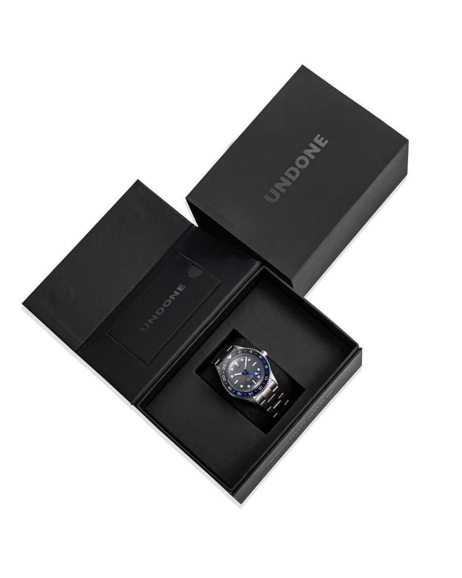 The Undone Basecamp Collector is the ultimate watch for modern adventurers. Whether navigating city streets or exploring rugged trails, this timepiece is built with precision and reliability in mind. Its robust NH34 GMT automatic movement ensures accurate timekeeping even in the most extreme conditions. Made from aerospace-grade titanium—the same material used in spacecraft and elite jets—this watch combines exceptional strength with remarkable lightness, allowing you to effortlessly transition from ocean depths to city heights. The Basecamp Collector is more than just durable; it’s designed to inspire. Featuring a sleek case and a crystal-clear sapphire lens, this watch is the result of relentless innovation. With water resistance up to 100 meters (10ATM), it is a dependable companion for deep-sea adventures and fast-paced urban life, embodying the spirit of boundless exploration.