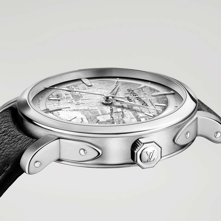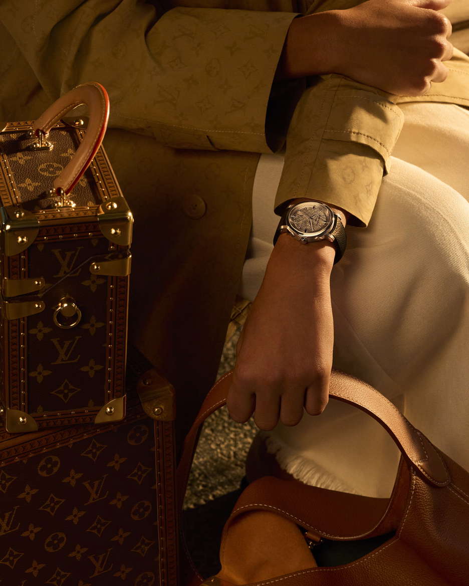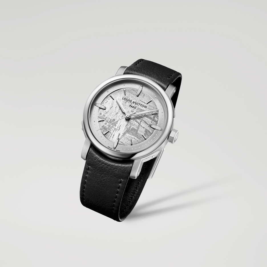 The new Louis Vuitton Escale collection celebrates its 10th anniversary with a time-only, three-hand model for the first time. Featuring highly textured surfaces and sophisticated finishes, the Escale introduces four new models: two in rose gold and two in platinum, each incorporating traditional Swiss horlogerie. The rose gold models offer a refined, everyday elegance with textured dials, while the platinum models are set with precious stones, or feature a meteorite dial. These new designs emphasize Louis Vuitton’s heritage in trunk making, with elements like angled, riveted markers reminiscent of the brand’s iconic trunks. The redesigned dial includes gold studs and a brushed finish for enhanced readability. The precision of these watches is ensured by the chronometer-certified cal. LFT023 movement, which features a 50-hour power reserve and energy-efficient titanium seconds hand. The rose-gold models’ dials reference the Monogram canvas texture, while the platinum versions uses rare materials like meteorite and onyx. Each watch includes an engraved serial number, connecting the wearer to Louis Vuitton’s artisanal craftsmanship. The Escale collection embodies the art of travel, with design details that echo Louis Vuitton’s storied history, making each timepiece a journey of self-discovery. The new Escale collection offers a sophisticated blend of tradition and innovation, inviting wearers to define their own time.