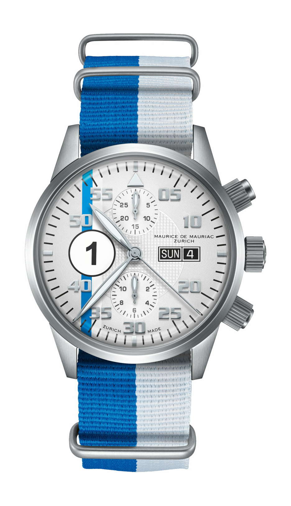 Maurice de Mauriac has unveiled a new line of customizable Chrono Modern Grand Prix Zurich watches, inspired by the motor-racing heritage and the vibrant colors of its hometown. This initiative is a nod to the planned 1939 Zurich Grand Prix, which was canceled due to World War II. Imagining what it would be like if the race were held today, the company partnered with Züri Ring Simulation Motodrom to create a dedicated chronograph and add two new dials to their Pit Stop collection. The project, led by Tom Mächler of the Züri Ring Simulation Motodrom, involved other notable figures like racing legend Hans Herrmann and racing photographer Rainer W. Schlegelmilch and aimed to create an authentic racing experience in Zurich, despite the impossibility of having real Formula 1 cars race through the city. Instead, they offer a simulated racing experience where individuals can drive an F1 car through a virtual Zurich track, experiencing realistic mechanical feedback. Maurice de Mauriac became the official timekeeper for the Zurich Grand Prix 2023, designing a timepiece that embodies the essence of racing and pays homage to Zurich. Maurice de Mauriac’s Chrono Modern Zurich Grand Prix watch line caters to racing enthusiasts with customizable features like Lucky Numbers and Racing Stripes. Customers can personalize their watches with any number between 01 and 99 to represent a special date, a racing number, or an idol’s number. The brand also offers to update the number if the wearer’s preferences change. Racing Stripes on the dial add a dynamic, traditional motorsport aesthetic, rooted in the brand’s two-decade history of celebrating classic car designs. The Chrono Modern Zurich Grand Prix edition watches, available in silvery white or black dials and with or without PVD coating on a 42 or 45mm case, pay homage to the city with blue/white colors of Zurich’s coat of arms. These watches are designed to withstand extreme conditions and feature Maurice de Mauriac’s patented design elements, including a screwed bezel, crown, pushers, and a day-date function, along with the personal touch of a lucky number and distinctive racing stripes.