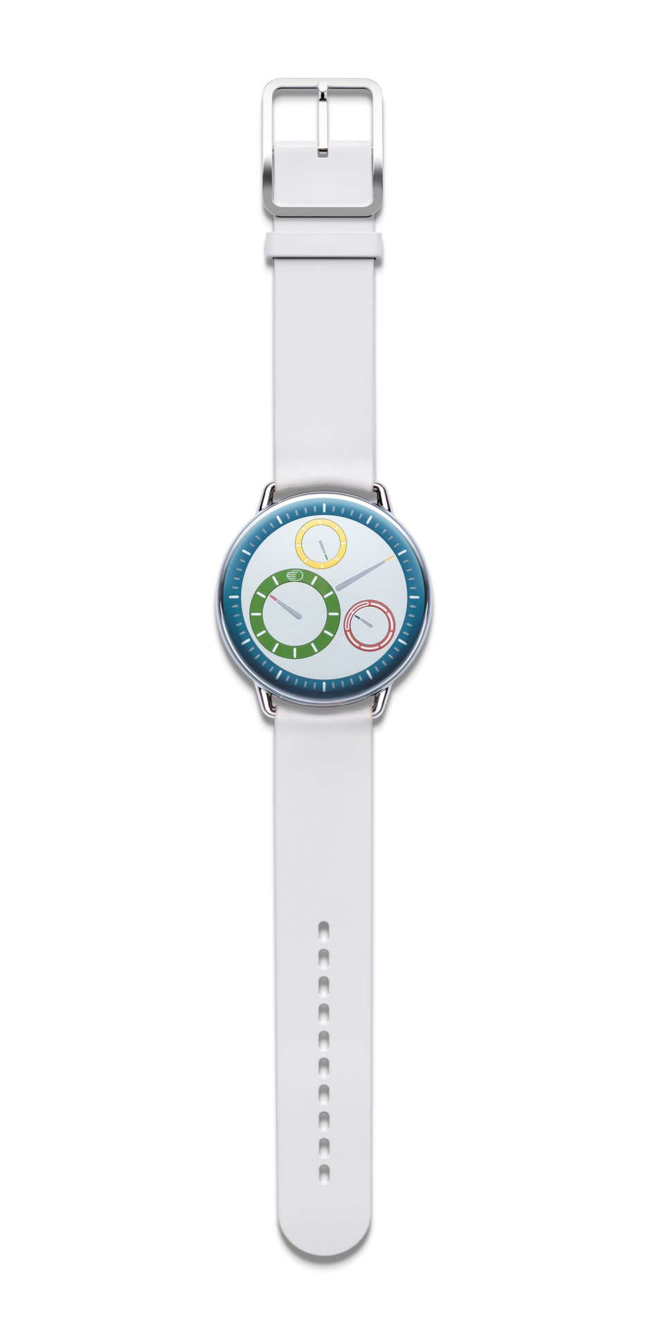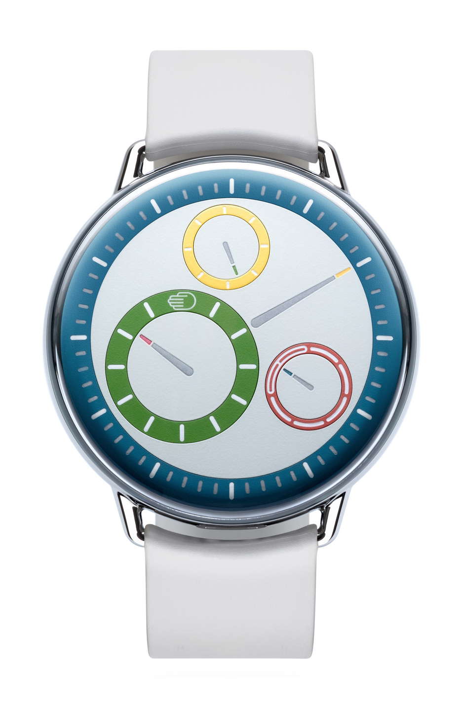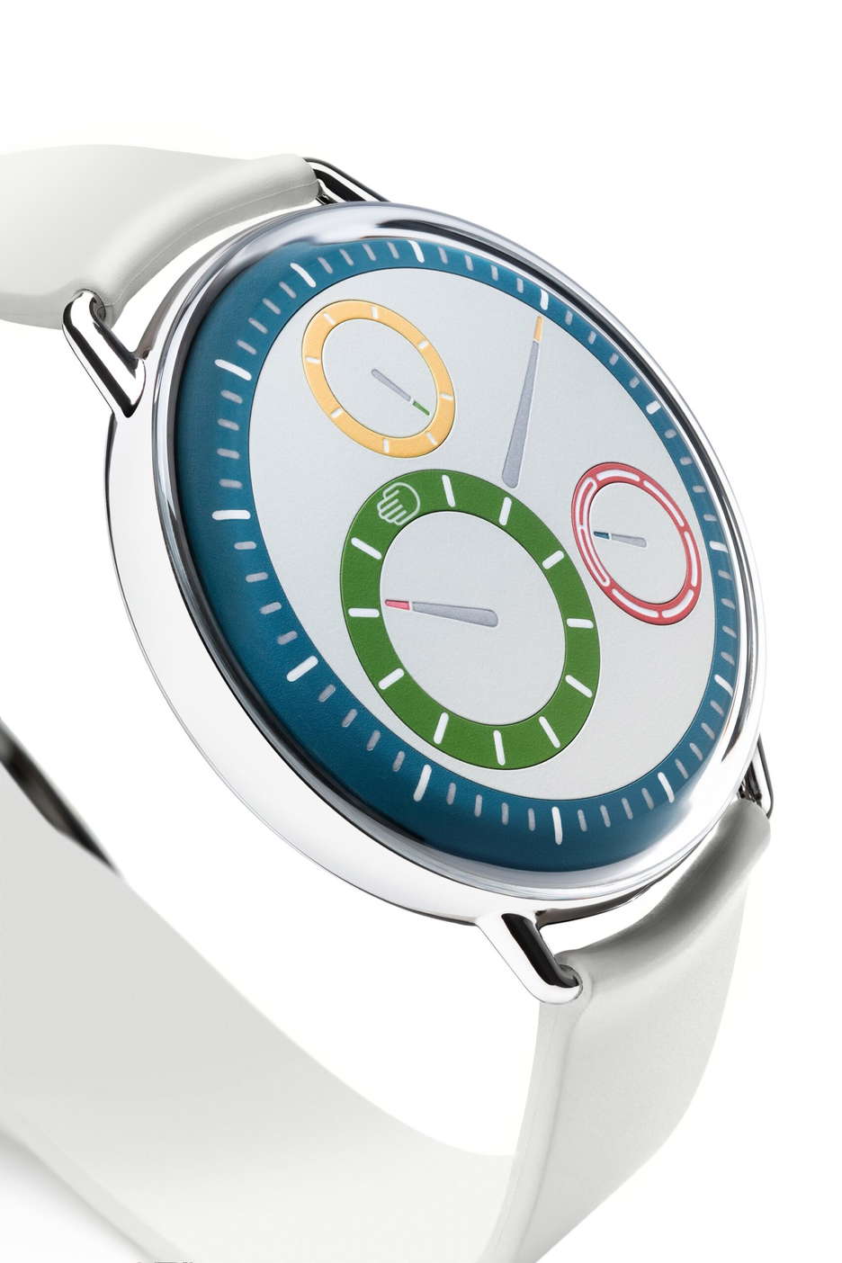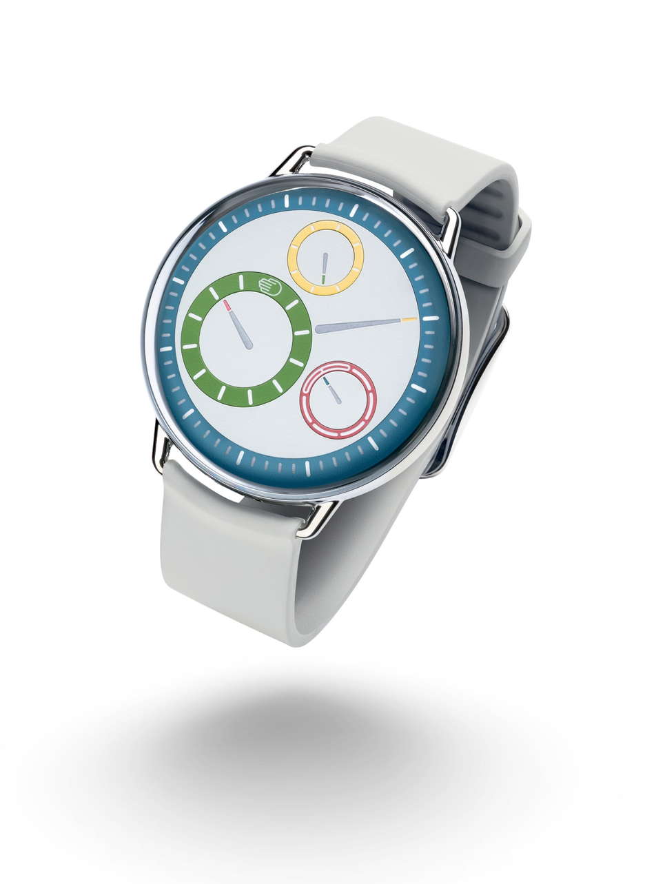 The M stands for Multicolor in Ressence’s new TYPE 1° M. A vibrant and innovative addition to the TYPE 1 Round collection, launched to captivate those with an appreciation for color in design. This watch features a polychromatic dial, showcasing a playful yet sophisticated array of colors on its hour, minute, second, and weekday discs. The primary colors red, blue, yellow, and green are set against a light grey dial, creating a visually striking effect. The design of the TYPE 1° M is a testament to Ressence’s commitment to sleek, modern aesthetics, with a focus on both form and function. The rounded case enhances the tactile experience, and the interplay of colors is thoughtfully paired with the design to enhance the overall visual appeal. Equipped with the advanced ROCS 1.3 module and a customized 2892 base calibre, the TYPE 1° M stands out for its technical prowess as well. This system features revolving discs for a unique, bi-dimensional time display. The intuitive interface, which winds the watch while setting the time, is designed for ease of use, eliminating the need for a crown and ensuring comfort for both left- and right-handed wearers. In addition to its design and mechanical features, the TYPE 1° M also offers practicality with its luminescent Super-LumiNova® coated hands and engraved indications, ensuring legibility in low-light conditions. Set for a worldwide release in Winter 2023 through Ressence’s official retail network, the TYPE 1° M is positioned as a distinctive choice for those seeking a harmonious blend of color, craftsmanship, and innovation in a timepiece.