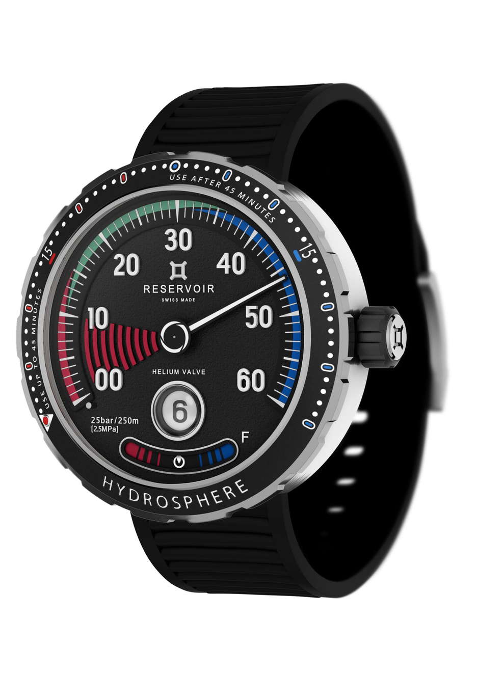 The Hydrosphere Blackfin timepiece features a robust steel casing paired with a sleek black dial. It’s designed for impending underwater immersion, boasting a dive time of 45 minutes and a maximum depth of 25 meters, all while facing increasing pressure. This watch is tailored to ignite the desire for exploration and challenge in both your senses and mind. As you prepare for your dive, make sure to check your equipment meticulously, including cylinders, oxygen, regulators, and stabilizers. Worn securely on your wrist, the Hydrosphere Blackfin watch proudly showcases the likeness of scuba diving manometers, the very first survival instrument created for divers. It boasts distinctive features such as a unidirectional ceramic rotating bezel with dual gradations, a helium valve, and a 316L stainless steel case that remains watertight up to 250 meters. The black dial, power indicator, and stainless steel bracelet with an extension system further enhance its unique appeal. Notably, the Hydrosphere Blackfin watch offers a radical time-reading experience with a single hand on the dial. Its Swiss-made self-winding mechanical movement is powered by a patented proprietary 124-piece module on the ETA2824 Caliber, providing a generous 37-hour power reserve. When you acquire this timepiece, it comes delivered in a waterproof container, complete with an additional rubber strap for added versatility.