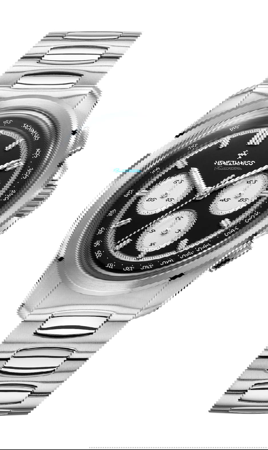 The Bucintoro 42 chronograph takes its name from the lavish vessel used by the Doge of Venice to inaugurate the annual “Regata Storica” (Historical Regatta). This event symbolizes the fusion of speed on water with traditional elegance. The Bucintoro 42 features a sleek profile and balanced proportions, making it a sophisticated and versatile companion for daily wear. With a comfortable stainless steel bracelet, the Bucintoro 42 adapts effortlessly to both sporty and refined settings. This chronograph is designed for those who value both functionality and style in their timepieces. It includes three sub-dials: a chronograph seconds hand with a tachymetric scale for measuring speed, a 30-minute counter at 9 o’clock, a continuous seconds counter at 3 o’clock, and an hour counter at 6 o’clock. Measuring 42mm in diameter and 11.70mm in thickness, the Bucintoro 42 has a slim case enhanced by a 1.90mm domed sapphire crystal, ensuring a comfortable fit on any wrist, even the slimmest. This well-balanced design and dynamic features make the Bucintoro 42 the perfect watch for any adventure, combining precision, versatility, and timeless elegance.