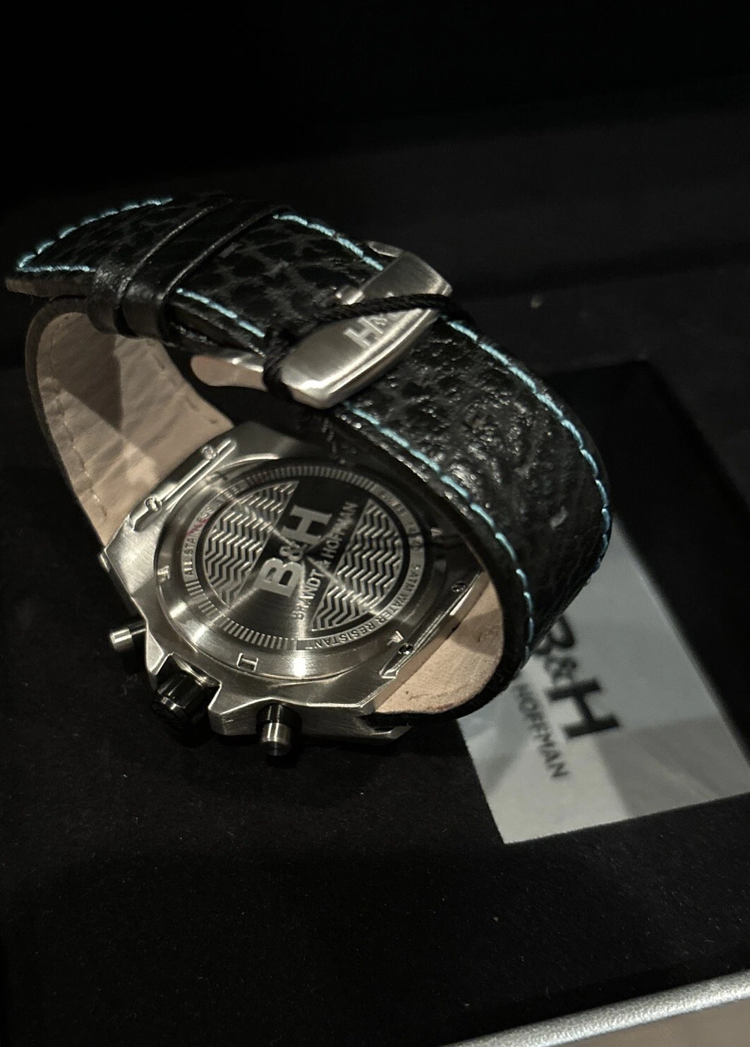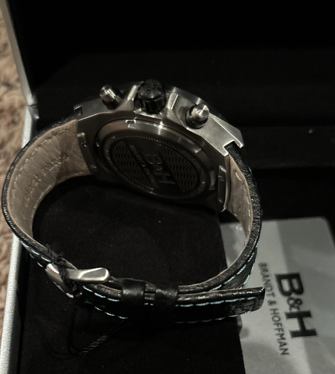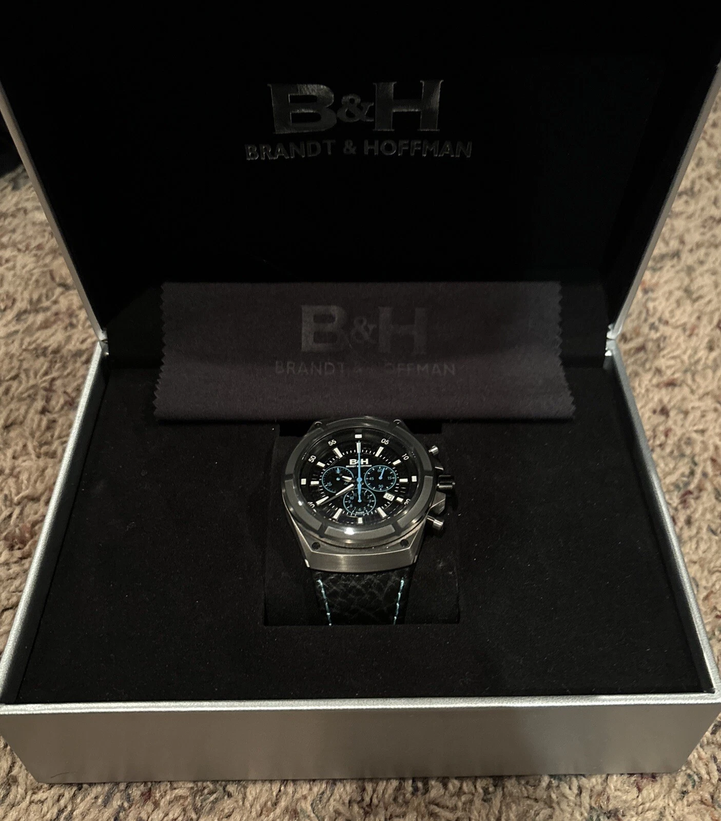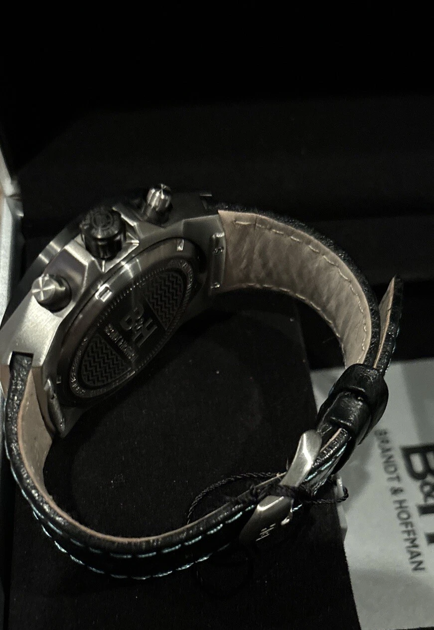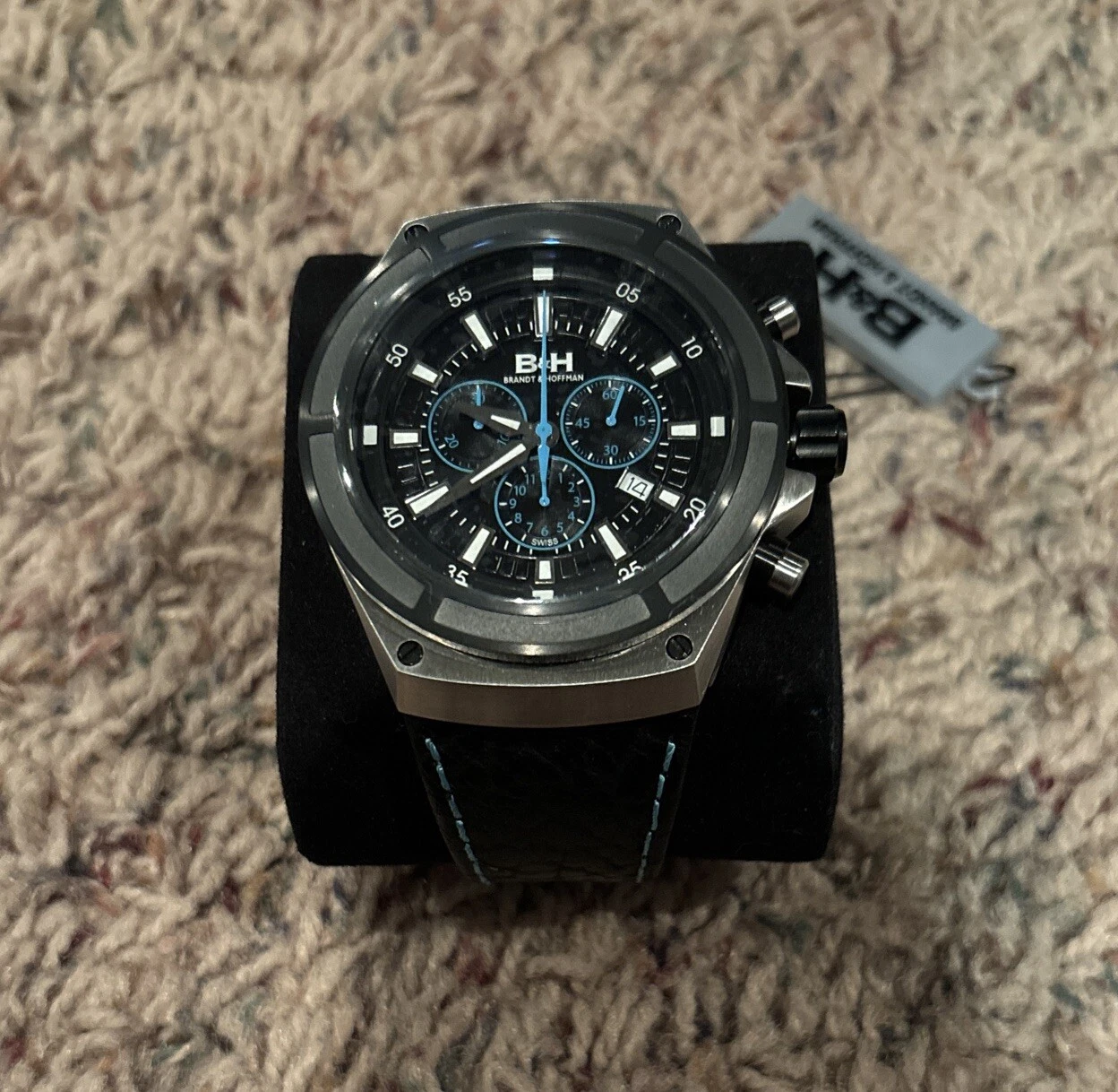 NEW Brandt & Hoffman Deacon Mens Swiss Chronograph Watch Black Dial Blue Accents