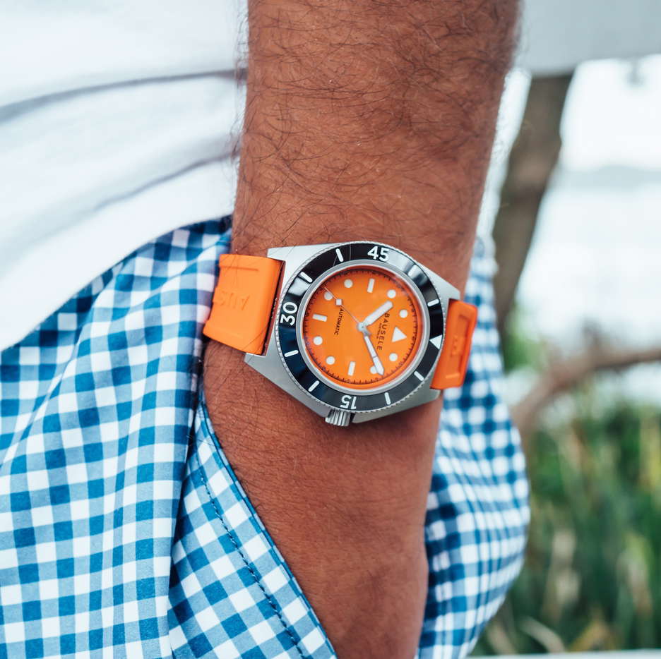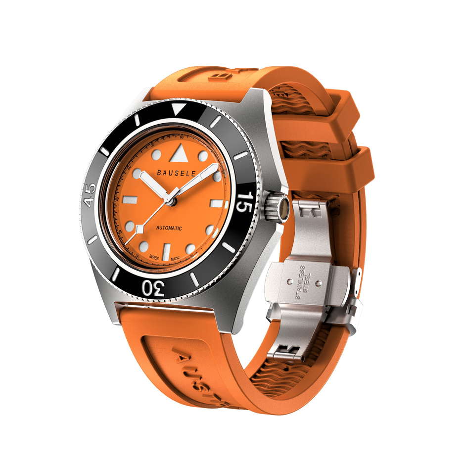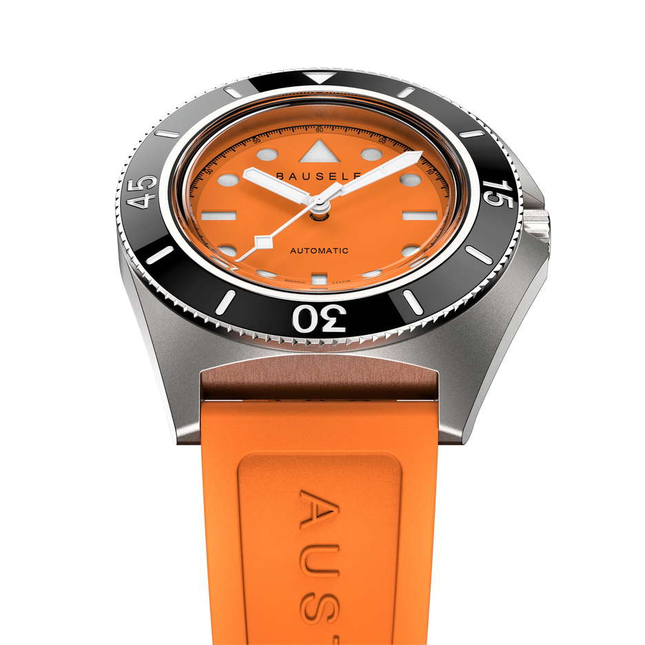 The color of gratitude. The captivating hues of the sunrise converge into a brief yet splendid burst of orange radiance over the Pacific coastline, a phenomenon Bausele has dubbed the ‘Tangerine Sun.’ This watch, vibrant and lively, immortalizes those fleeting seconds. Seize the moment and let it resonate with the world. With a touch of sand from Manly Beach enclosed in the crown, this timepiece becomes the ultimate symbol of beachy vibes, allowing you to take that seaside ambiance with you anywhere you go in Bausele’s timeless Dive Watch Series. The Endless Summer Tangerine Sun boasts a 39.5mm case size with a lug-to-lug measurement of 47.5mm. Safety and durability aren’t compromised, with a 200m water resistance ensuring its resilience even in aquatic adventures. The double-domed scratch-resistant sapphire crystal is enhanced with five layers of anti-reflective coating, ensuring the dial remains clear and readable, even in challenging lighting conditions. To enhance visibility, the hands and numerals are adorned with the glow in the dark Super Luminova, ensuring time reading is seamless day and night. The Endless Summer Tangerine Sun comes with two distinctive straps: the mesh milanese stainless steel strap exudes elegance and sophistication, while the vibrant orange rubber strap adds a pop of color and fun. At its core, the timepiece is powered by the Sellita SW200 Automatic self-winding movement, ensuring accurate timekeeping and unparalleled reliability. The Endless Summer Good Vibes Yellow is a limited edition with only 100 numbered pieces available.