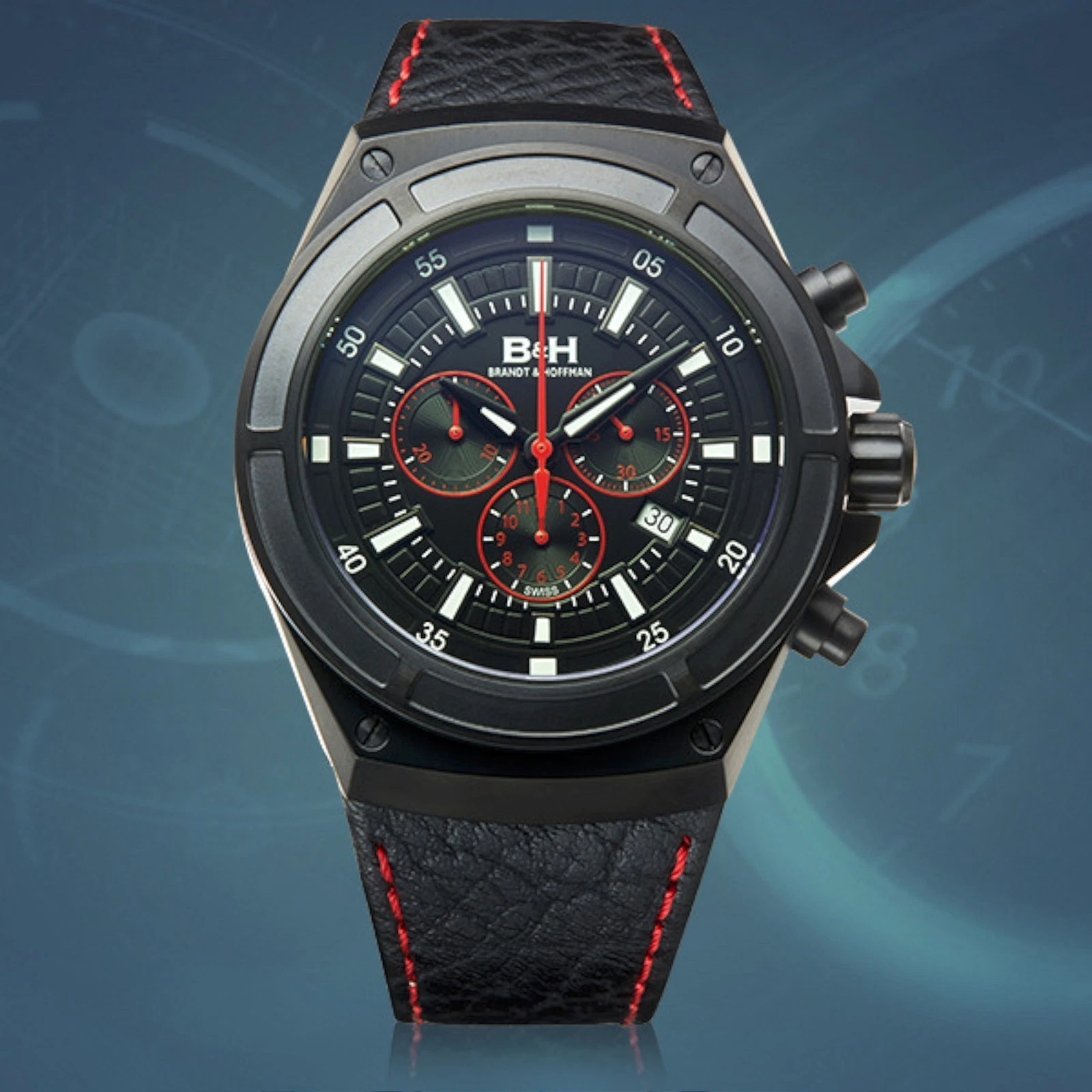 NEW Brandt & Hoffman 14040-BLK Mens Chronograph Deacon Luxury Sports Watch RED
