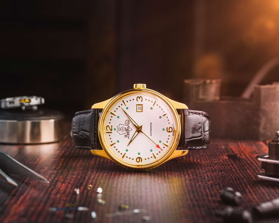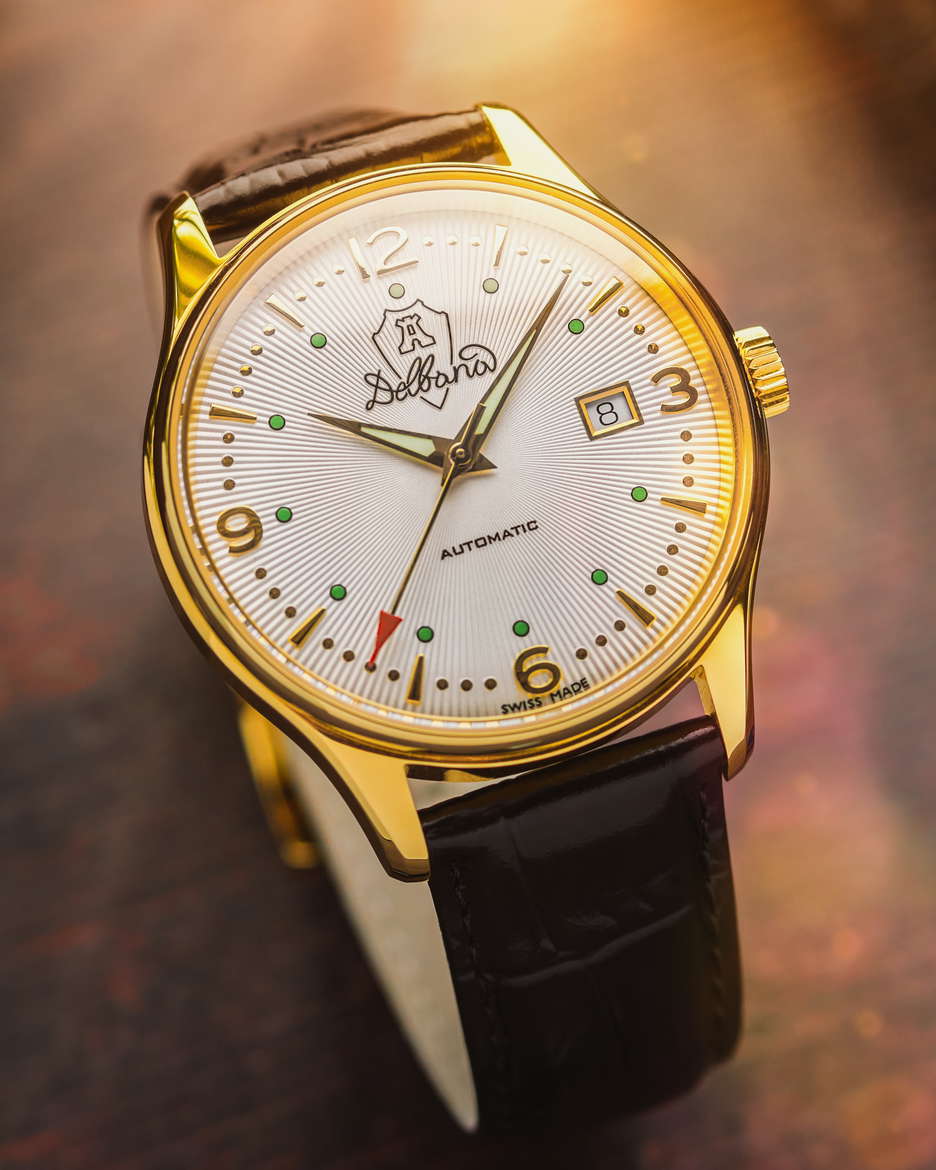 Delbana Della Balda: A Tribute to Founder Goliardo Della Balda’s 90th Anniversary Delbana, a brand with almost a century of history, celebrated its 90th anniversary in 2021. Founded by Goliardo Della Balda, who moved from San Marino, Italy to Switzerland in 1931, the brand has always been known for its commitment to quality and affordability. In 2022, Delbana introduced two updated models in honor of its founder. These models feature polished PVD yellow gold cases with two dial options, offering a modern take on classic designs. With a 40mm stainless steel case, a water resistance rating of 50 meters, and a Sellita SW200 automatic movement, these watches combine style and functionality. Whether you choose the white or champagne dial, both feature yellow gold PVD accents, luminescent hour markers, and a date window. Delivered in a black leatherette box with a two-year warranty, the Delbana Della Balda is a timeless tribute to the brand’s heritage.