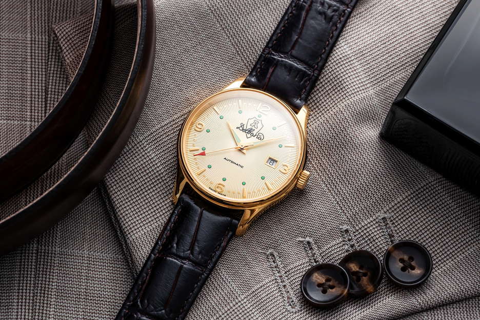 Delbana Della Balda: A Tribute to Founder Goliardo Della Balda’s 90th Anniversary Delbana, a brand with almost a century of history, celebrated its 90th anniversary in 2021. Founded by Goliardo Della Balda, who moved from San Marino, Italy to Switzerland in 1931, the brand has always been known for its commitment to quality and affordability. In 2022, Delbana introduced two updated models in honor of its founder. These models feature polished PVD yellow gold cases with two dial options, offering a modern take on classic designs. With a 40mm stainless steel case, a water resistance rating of 50 meters, and a Sellita SW200 automatic movement, these watches combine style and functionality. Whether you choose the white or champagne dial, both feature yellow gold PVD accents, luminescent hour markers, and a date window. Delivered in a black leatherette box with a two-year warranty, the Delbana Della Balda is a timeless tribute to the brand’s heritage.