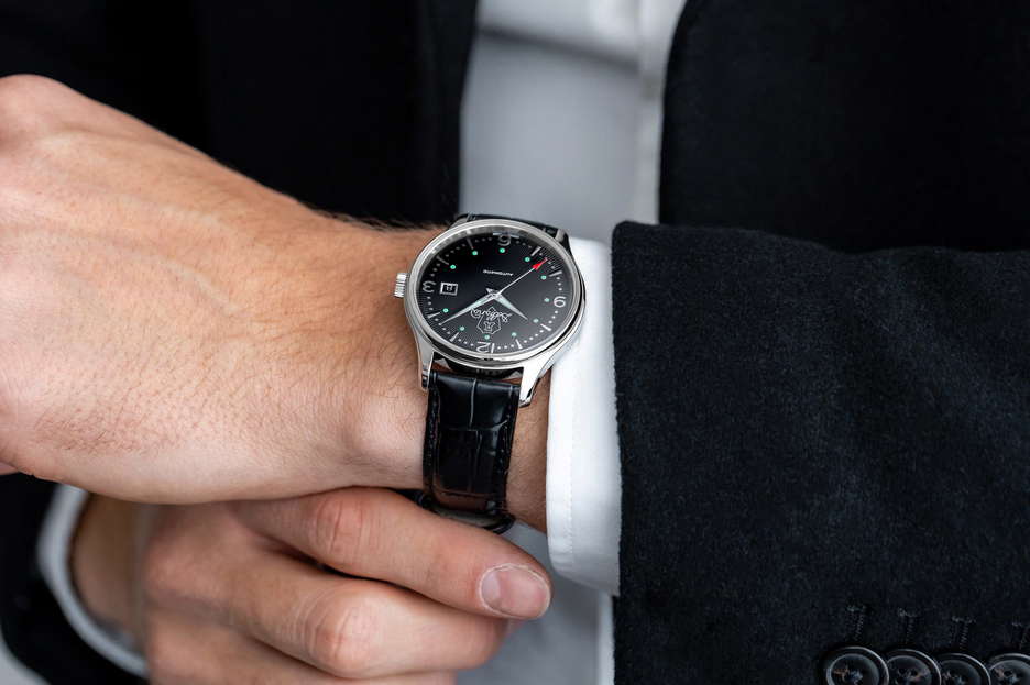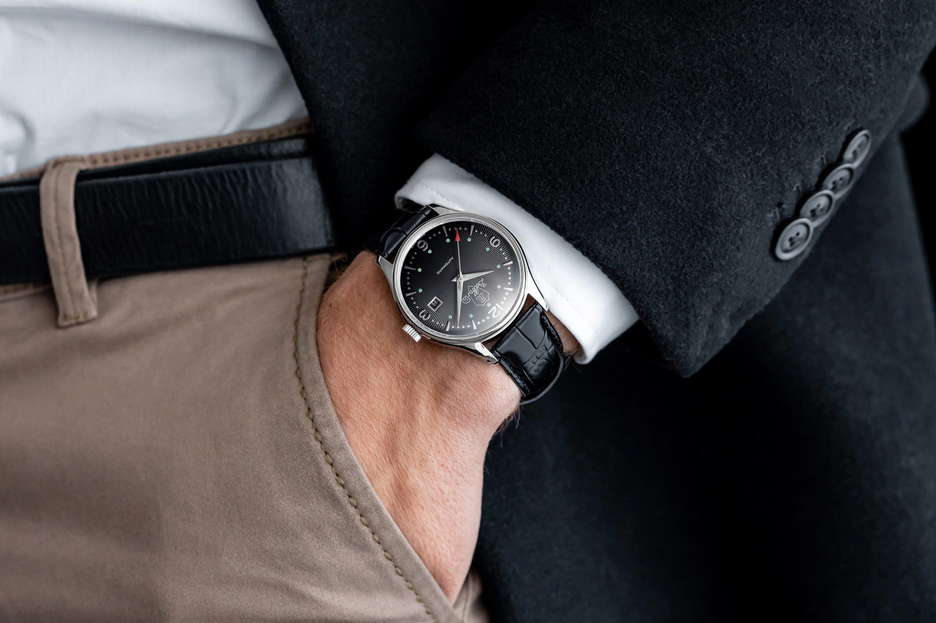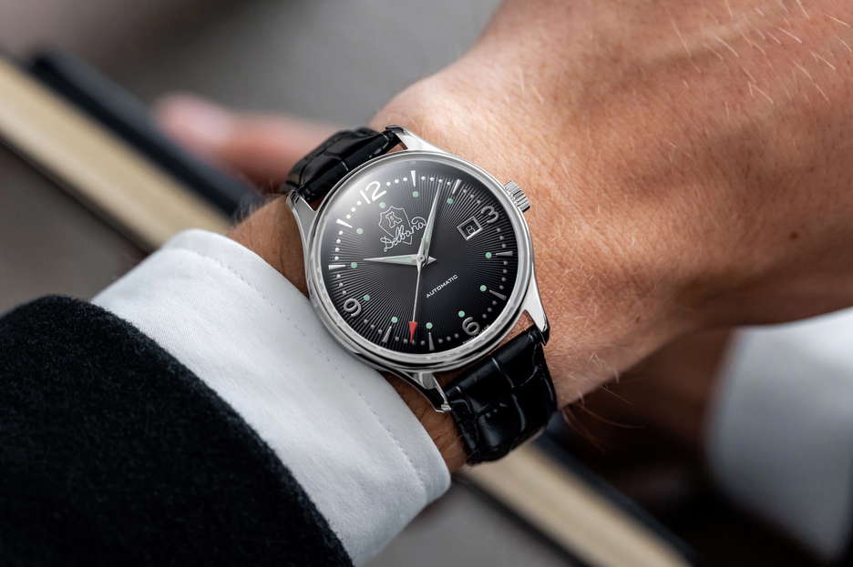 The Delbana Della Balda was launched in honor of the 90th anniversary of the company and its founder, Goliardo Della Balda. Delma introduced the stainless steel Della Balda as a tribute to Goliardo and a return to mechanical watches, as most of their collection at the time consisted of quartz-powered watches. These stainless steel cases are contemporary, measuring 40mm in diameter and 11.5mm in height. The dial is protected by a domed AR sapphire crystal, and the back of the case has a mineral crystal exhibition back, revealing the Sellita SW200 automatic movement. With its sleek, all-dial appearance and a narrow bezel, it has a timeless style suitable for both dressing up and casual wear. It has a water resistance of 50 meters and comes with a 20mm brown leather strap with a stainless steel pin buckle. Two dial color options are available: white and black, both featuring a sunray guilloche pattern. Both dials have applied Arabic numerals at 12, 6, and 9 o’clock, along with hour markers for every hour. Luminescent hour markers are placed just inside the indices, and the hour and minute hands also feature luminescence. The second hand stands out with its contrasting red tip, and a date window is positioned at 3 o’clock. The classic Delbana crest is printed just below the 12 o’clock position, adding to its vintage charm. These watches are presented in a black leatherette box and come with a two-year warranty.
