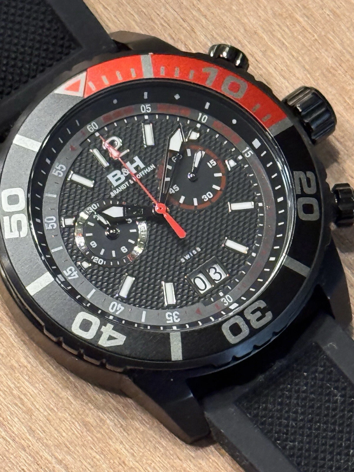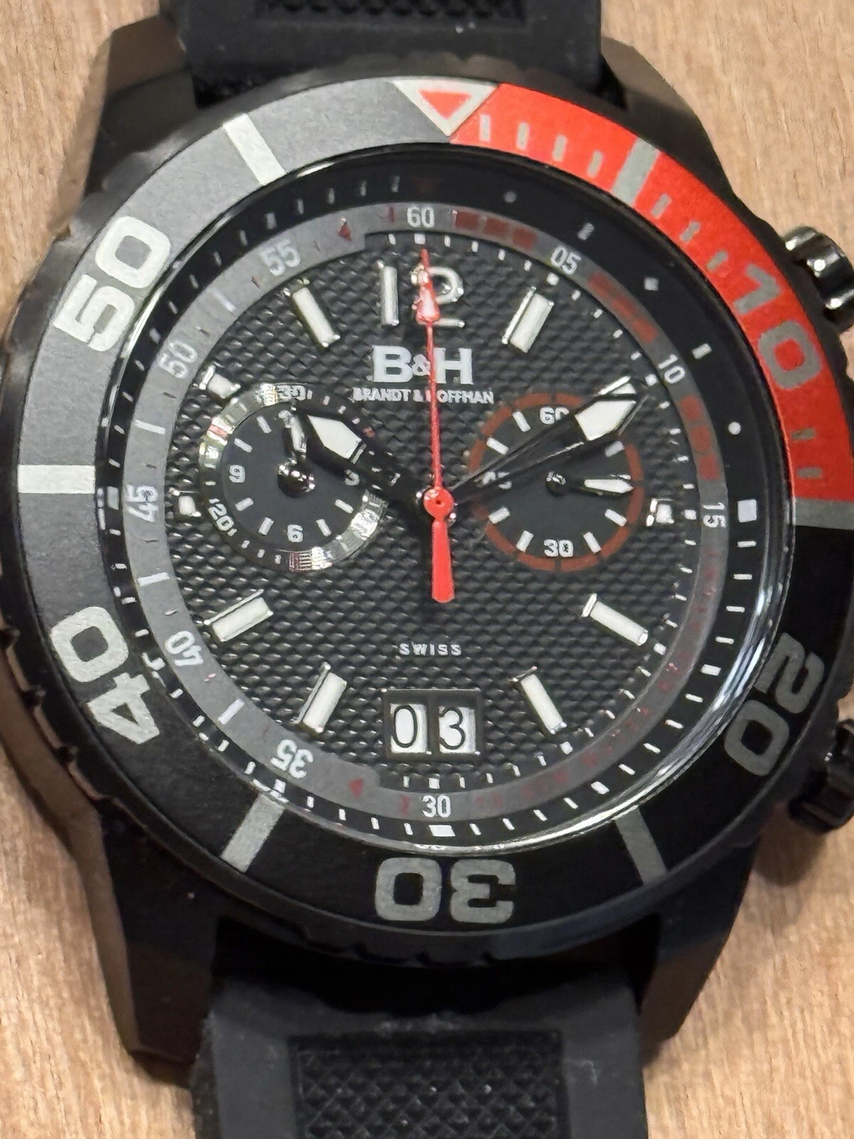 Brandt & Hoffman Black And Red Chronograph Swiss  Movement