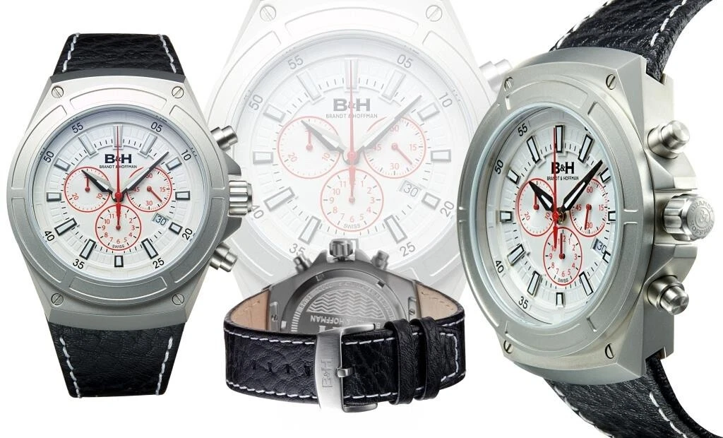 NEW Brandt & Hoffman 14040-WHT Mens Swiss Chronograph Deacon Luxury Watch WHITE