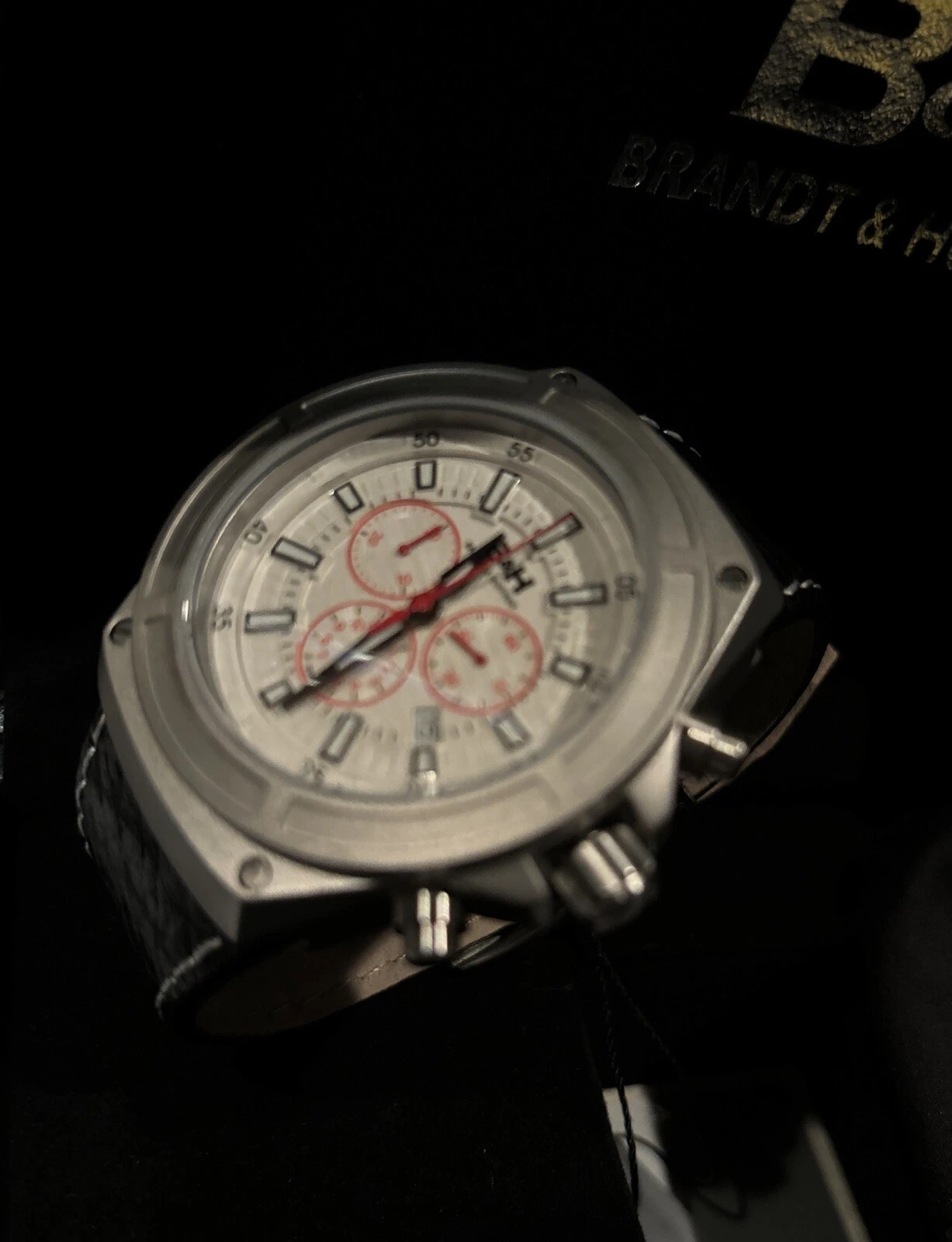 NEW Brandt & Hoffman 14040-WHT Mens Swiss Chronograph Deacon Luxury Watch WHITE