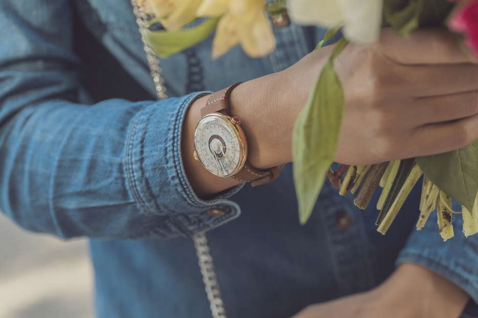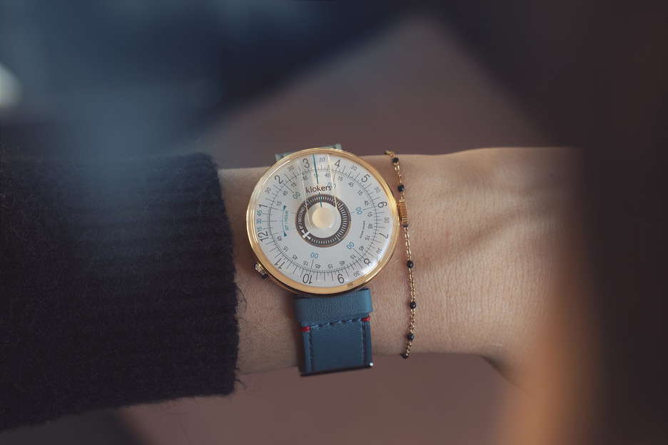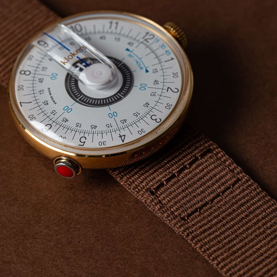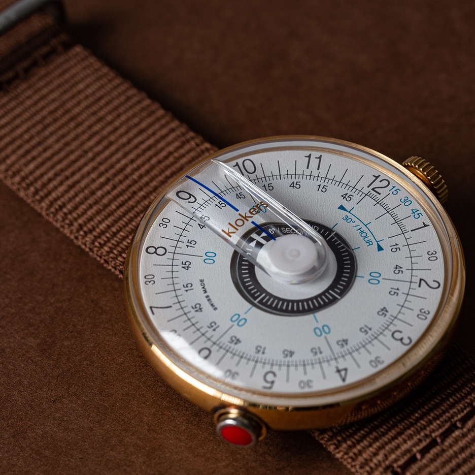 In 2017, Klokers unveiled the KLOK 08, a watch designed for both men and women, paying homage to the vibrant and transformative 1960s. This era, known for its bold pop art, design, and fashion, significantly influenced the style of KLOK 08s. The watch embodies the geometric and rounded aesthetics characteristic of the Space Age, featuring a hemispheric case that captures the essence of the 1960s design. The KLOK 08 features the unique Klokers key, a patented attachment system. This innovative design allows for easy detachment of the watch case from the strap, offering the flexibility to change straps according to personal style and mood. This interchangeability transforms the KLOK 08 into a versatile and timeless accessory for everyday wear. Time-telling in the KLOK 08 is achieved through three rotating rings for hours, minutes, and seconds, with time read at the 12 o’clock position marked by a vertical line. The watch’s interior boasts a Cyclops-type device on the mineral crystal, slightly magnifying the numbers for easier reading. While the minute track has 60 lines for each minute, the watch is often more conveniently read in 15-minute intervals, though closer inspection allows for more precise time determination. The yellow gold plated steel case, 39mm wide and 10mm high, is surprisingly light and comfortable. It is powered by a Quartz movement from Ronda, a Swiss manufacturer known for its quality quartz movements. The design is unisex and appealing to all with its various color schemes and strap options.