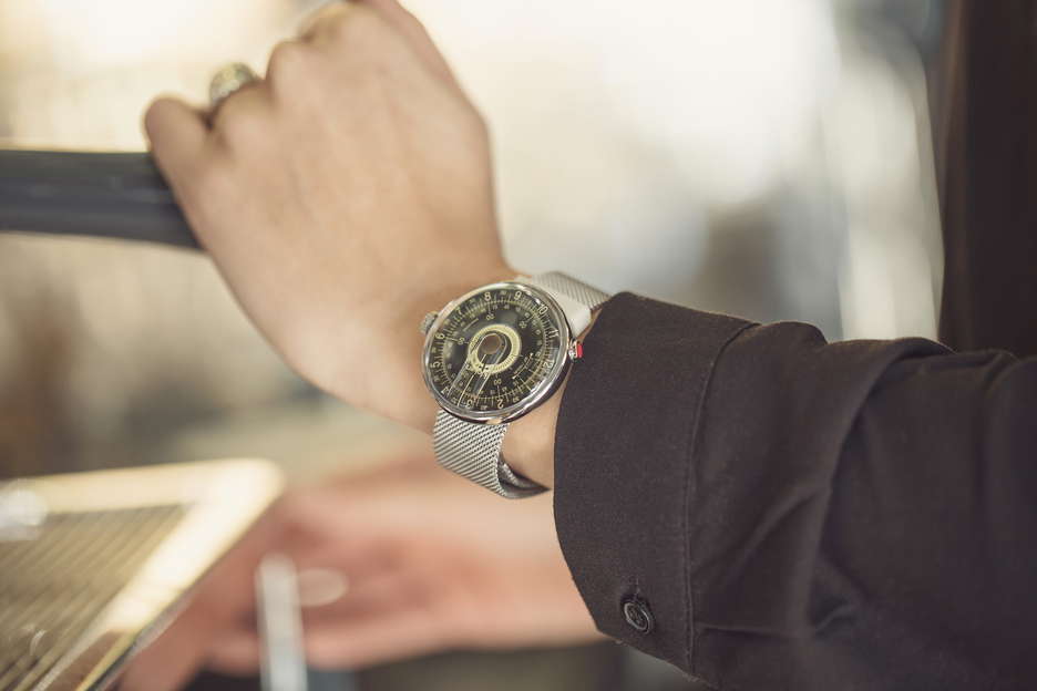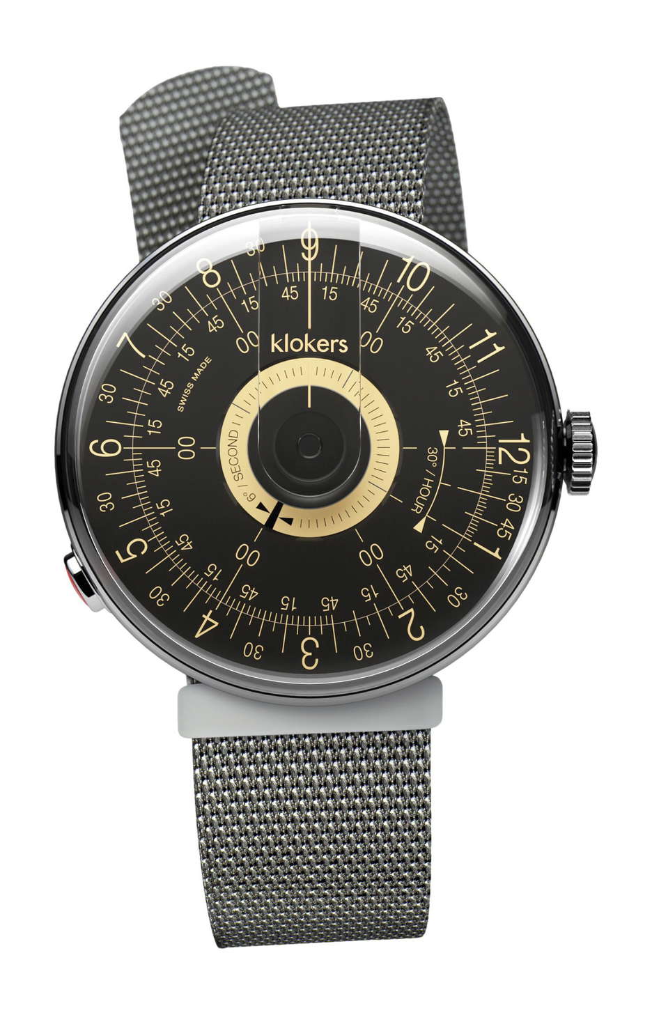 In 2017, Klokers unveiled the KLOK 08, a watch designed for both men and women, paying homage to the vibrant and transformative 1960s. This era, known for its bold pop art, design, and fashion, significantly influenced the style of KLOK 08s. The watch embodies the geometric and rounded aesthetics characteristic of the Space Age, featuring a hemispheric case that captures the essence of the 1960s design. During the 1960s, the color black emerged as both a political symbol and a representation of modern art theories. Today, this influence is beautifully reflected in the KLOK 08’s polished metal case with a warm black dial and patinated yellow markings. The KLOK 08 Sixties features the unique Klokers key, a patented attachment system. This innovative design allows for easy detachment of the watch case from the strap, offering the flexibility to change straps according to personal style and mood. This interchangeability transforms the KLOK 08 into a versatile and timeless accessory for everyday wear. Time-telling in the KLOK 08 is achieved through three rotating rings for hours, minutes, and seconds, with time read at the 12 o’clock position marked by a vertical line. The watch’s interior boasts a Cyclops-type device on the mineral crystal, slightly magnifying the numbers for easier reading. While the minute track has 60 lines for each minute, the watch is often more conveniently read in 15-minute intervals, though closer inspection allows for more precise time determination. The case, 39mm wide and 10mm high, is surprisingly light and comfortable, powered by a Quartz movement from Ronda, a Swiss manufacturer known for its quality quartz movements. It is designed to be unisex and appealing to all with its various color schemes and strap options.