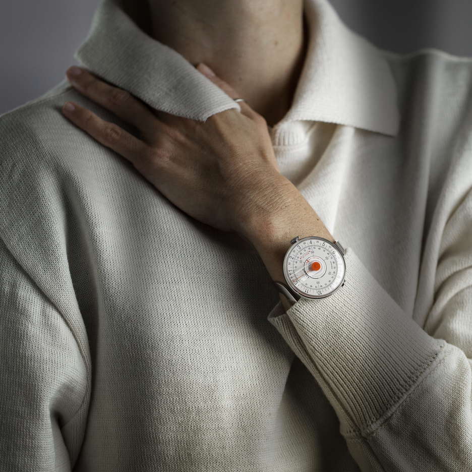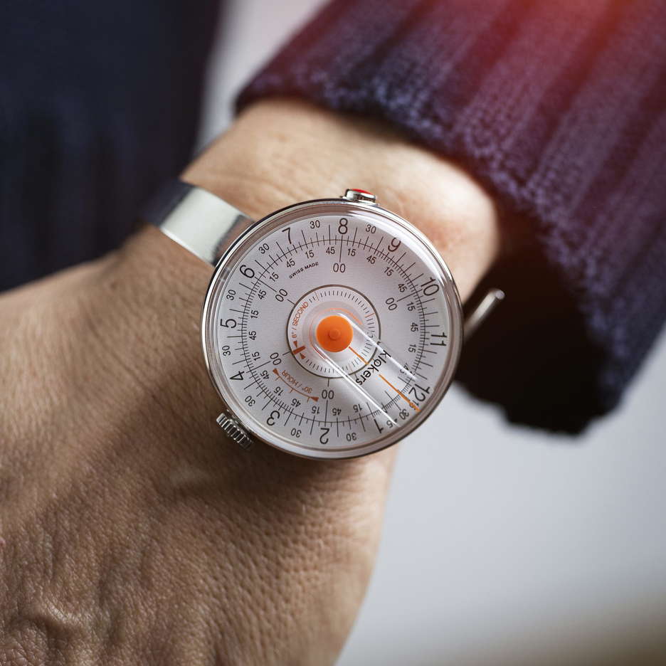 In 2017, Klokers unveiled the KLOK 08, a watch designed for both men and women, paying homage to the vibrant and transformative 1960s. This era, known for its bold pop art, design, and fashion, significantly influenced the style of KLOK 08s. The watch embodies the geometric and rounded aesthetics characteristic of the Space Age, featuring a hemispheric case that captures the essence of the 1960s design. The KLOK 08 features the unique Klokers key, a patented attachment system. This innovative design allows for easy detachment of the watch case from the strap, offering the flexibility to change straps according to personal style and mood. This interchangeability transforms the KLOK 08 into a versatile and timeless accessory for everyday wear. Time-telling in the KLOK 08 is achieved through three rotating rings for hours, minutes, and seconds, with time read at the 12 o’clock position marked by a vertical line. The watch’s interior boasts a Cyclops-type device on the mineral crystal, slightly magnifying the numbers for easier reading. While the minute track has 60 lines for each minute, the watch is often more conveniently read in 15-minute intervals, though closer inspection allows for more precise time determination. The stainless steel case, 39mm wide and 10mm high, is surprisingly light and comfortable. It is powered by a Quartz movement from Ronda, a Swiss manufacturer known for its quality quartz movements. The design is unisex and appealing to all with its various color schemes and strap options.