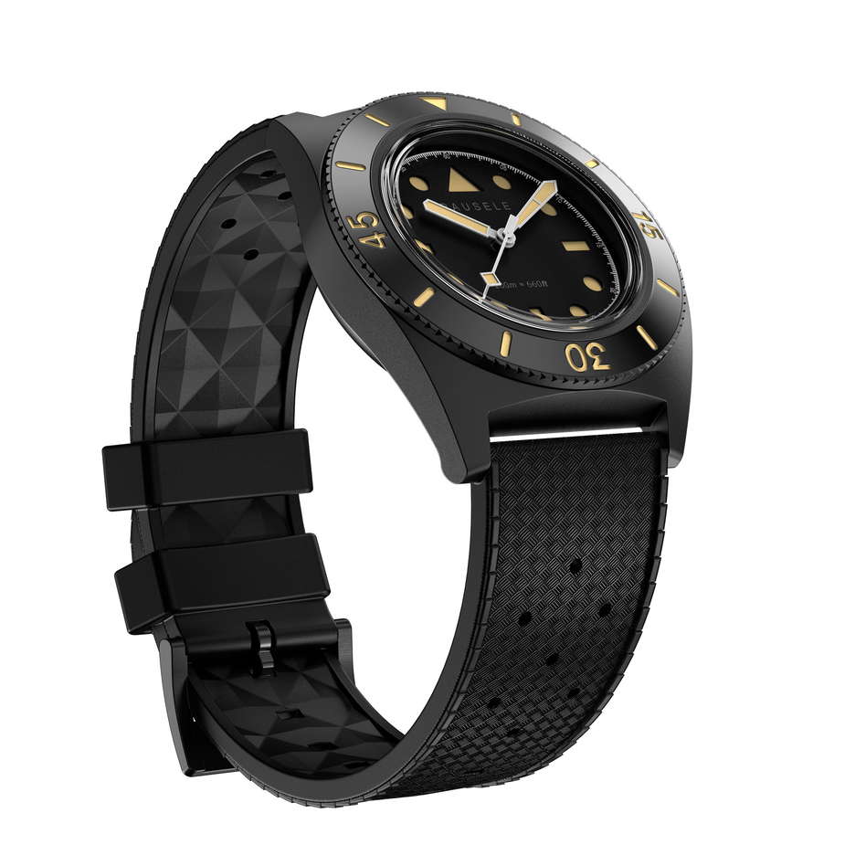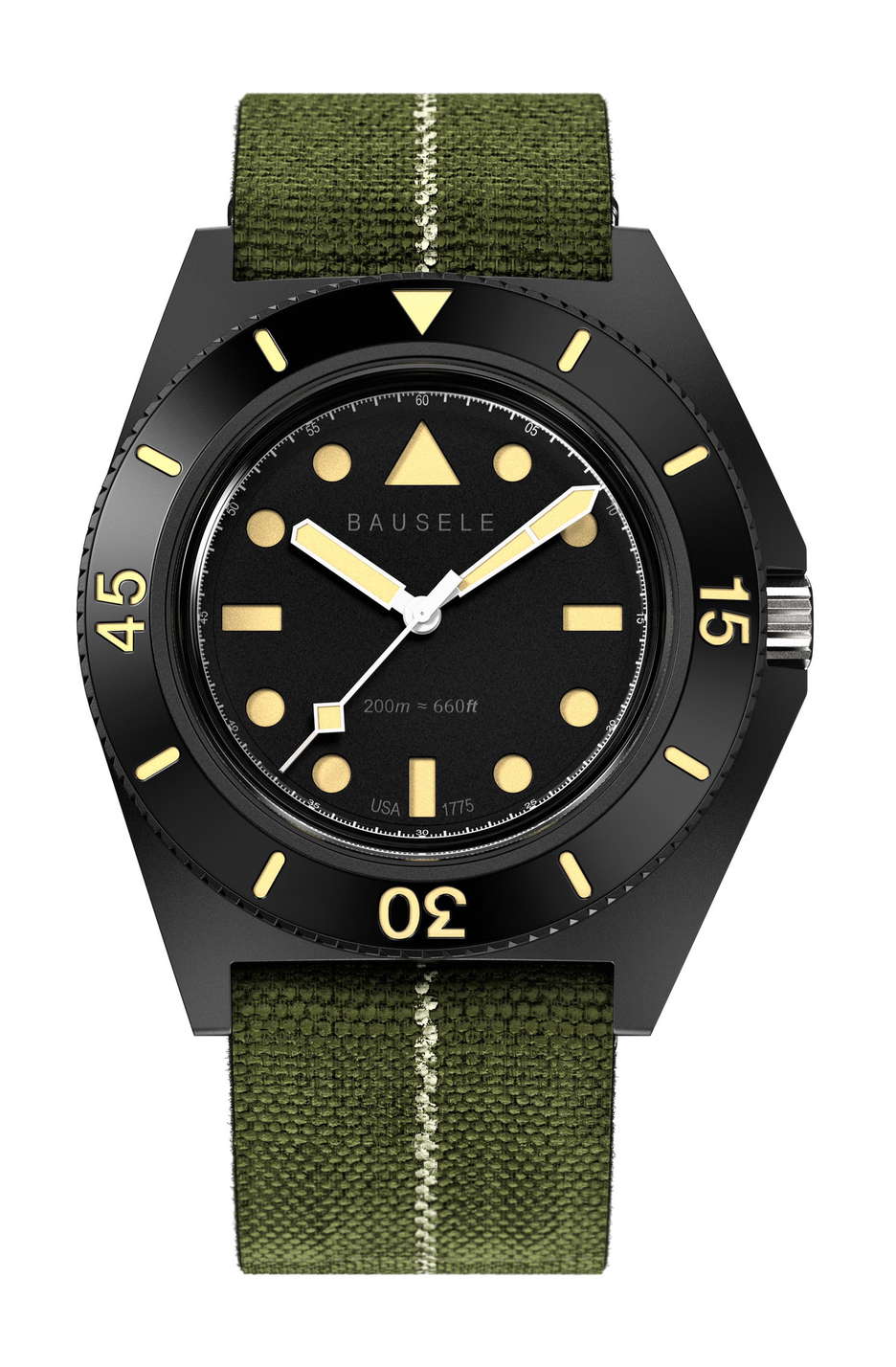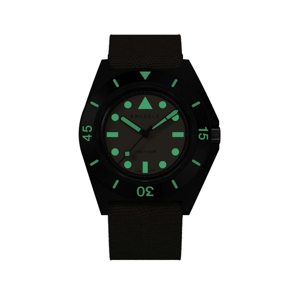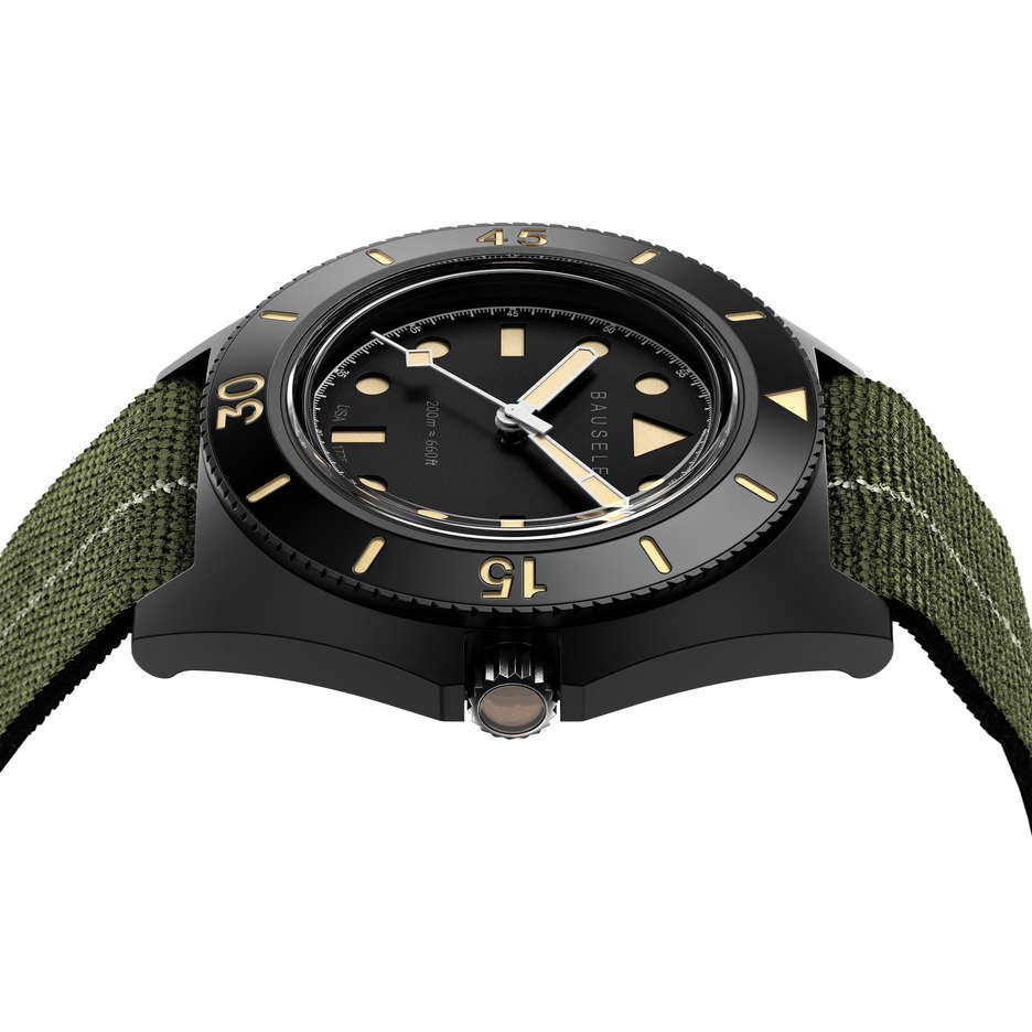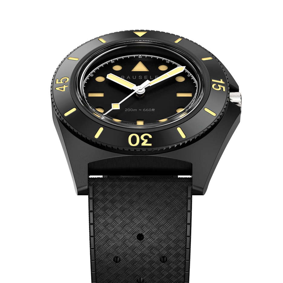 Dive into the captivating Bausele Diver collection, which seamlessly melds the allure of timeless designs with contemporary craftsmanship. Drawing profound inspiration from the 1940s, an epoch when watches symbolized lifelong treasures, this collection reminisces about the military timepieces of that era. Each was designed with precision and purpose, and Bausele’s Diver collection captures this spirit immaculately. The Sydney Diver Tasman Black boasts a black case, a choice deeply rooted in the need to reduce light reflection, crucial during covert operations. The black dial is a testament to functionality and aesthetics, with its luminescent hands and sharply contrasted, easily readable numbers, ensuring time is always within a glance, even in low-light situations. The Bausele Sydney Diver Tasman Black is housed in a 39.5mm case, spanning 47.5mm from lug to lug, and with 22mm lugs, it’s built for a comfortable fit on any wrist. As for its resilience, the watch has a 200m water resistance, making it a trusty companion for both diving and urban escapades. The automatic movement guarantees precise timekeeping. Further enhancing its clarity and durability is the double-domed scratch-resistant sapphire crystal, generously layered with five applications of anti-reflective coating. Limited to a mere 250 pieces, each watch is individually numbered, making it a unique collector’s item. Adding a touch of historical significance, the crown at 3H is filled with authentic soil from US military forts. Additionally, the glow in the dark old radium luminova hands and numerals provide both functionality and a vintage appeal. To ensure versatility in style, each Bausele Diver watch is accompanied by two straps: a stretchy Nato and a classic Tropic rubber strap. It’s more than just a watch; it’s a journey through time.”