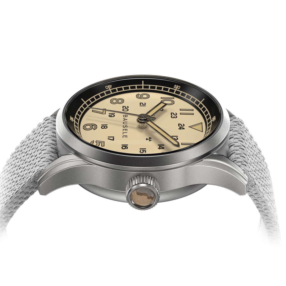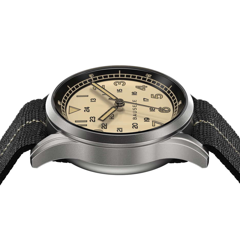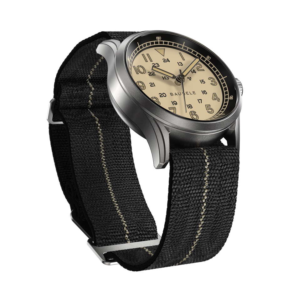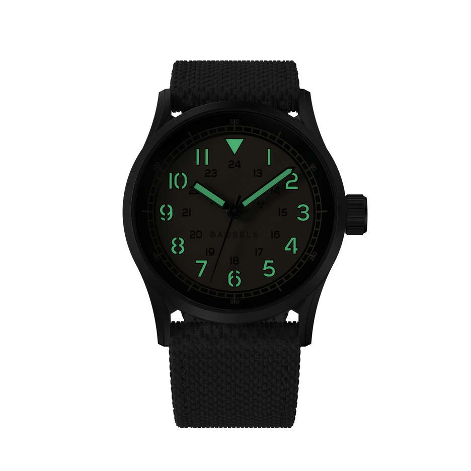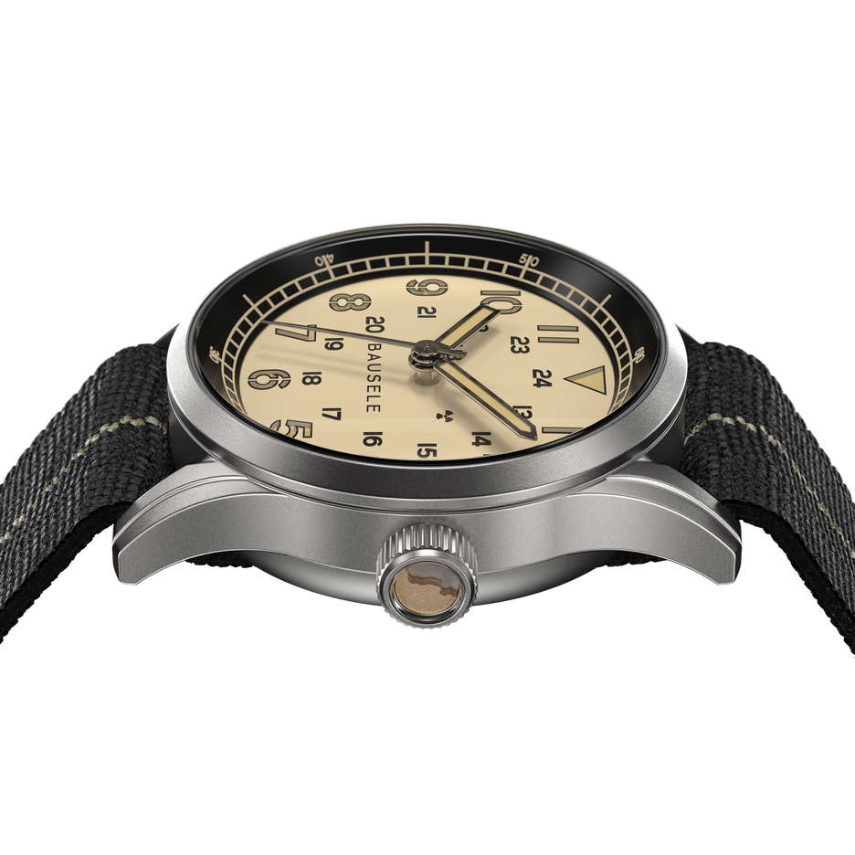 The Bausele Classic Field Series is a tribute to a time when watches were more than mere time-telling devices. Drawing deep inspiration from the 1940s, this collection harkens back to an era when a watch was a cherished possession, meant to be handed down through generations. During this pivotal decade, military watches were crafted with particular attention to detail and function. Their matte metal casing was designed to avoid any undesirable light reflection, ensuring that the wearer remained inconspicuous during crucial moments. The dark dial, with its luminous hands and easily readable numbers, was not only a nod to elegance but also a testament to functionality, allowing for quick time checks even in the most challenging light conditions. But it wasn’t just about the appearance. At the core of these watches was a movement that was simple in design yet unmatched in accuracy and durability. Every tick was a reminder of the watch’s unwavering reliability, even in the most demanding situations. The Bausele Classic Field Series embraces these design principles and blends them with modern craftsmanship. It’s a watch that resonates with history while fitting seamlessly into today’s world, making it a perfect choice for those who appreciate the blend of tradition and innovation.