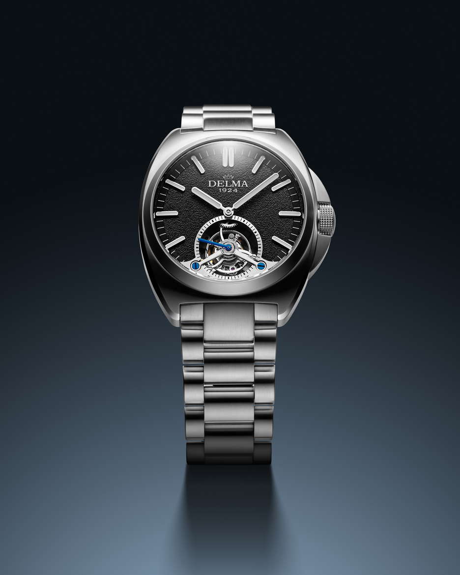 The DELMA 1924 Tourbillon is a special watch created to commemorate the 100th anniversary of DELMA. With a century of continuous production, this watch is a testament to DELMA’s resilience through technological, economic, and political changes. The company, established by the Gilomen brothers and remaining family-owned, has been based in Lengnau since its beginning. Known for catering to enthusiasts of active lifestyles, DELMA has gained recognition for its robust divers’ watches. Their timepieces, blending classical and modern designs, are crafted with exceptional quality and attention to detail, values that have been a part of the brand since its inception. DELMA’s commitment to Swiss craftsmanship is evident in their choice to design a proprietary Swiss movement for this model, in collaboration with specialists and firms from the region, ensuring that each component meets their high standards. The Caliber DT100.01 at the heart of the watch boasts a 105-hour power reserve, superior precision with a variable-inertia balance, and resilience against magnetic fields and shocks. The movement’s aesthetic is just as impressive, with decorative touches like perlage and Côtes de Genève, and it paves the way for the brand’s future in creating more proprietary movements. The habillage of the DELMA 1924 Tourbillon matches the movement’s elegance, featuring a sable black dial with palladium nickel-plated hands and a 316L stainless steel case with brushed and polished finishes. It comes with a stainless steel bracelet and an Italian leather strap, showcasing the brand’s commitment to luxury, detail, and Swiss tradition. The DELMA 1924 Tourbillon is appropriately limited to only 100 pieces.