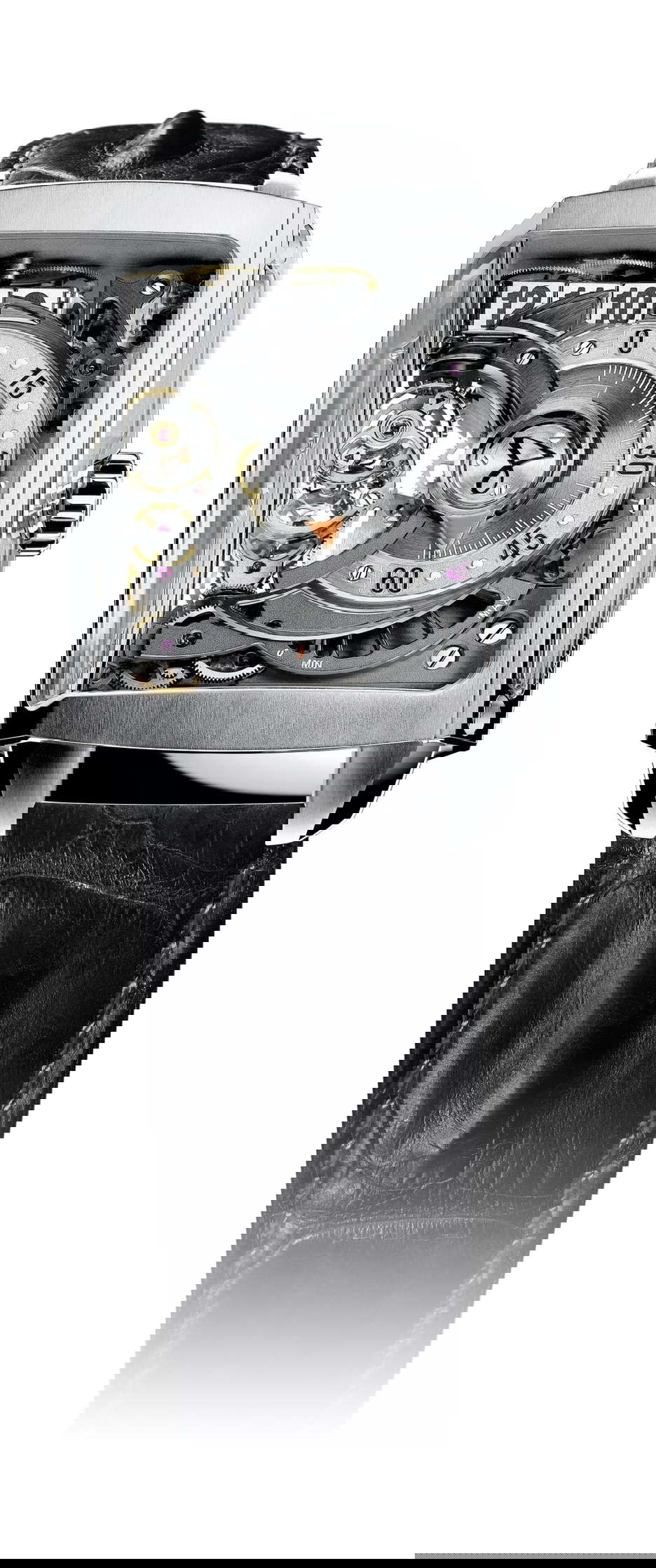 Functions:hours,minutes,power reserve,power reserve indicator,retrograde