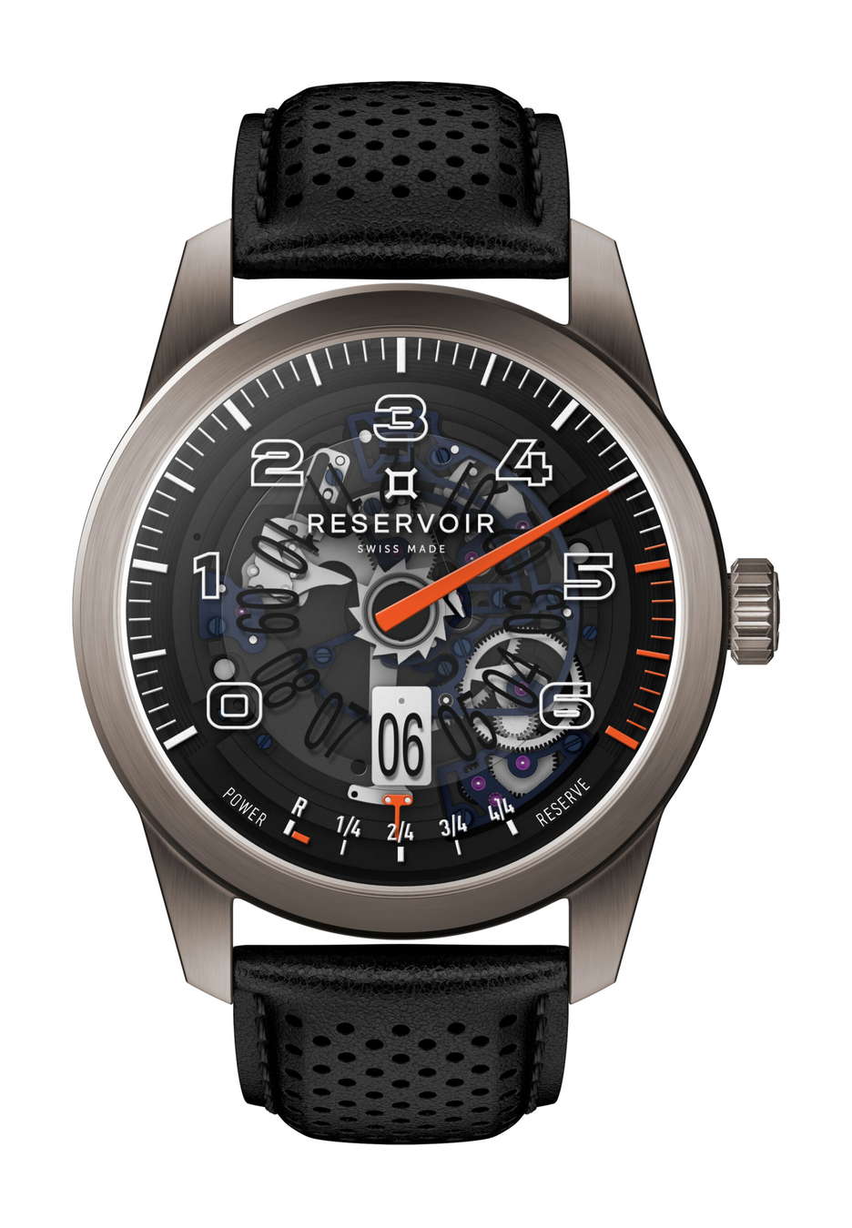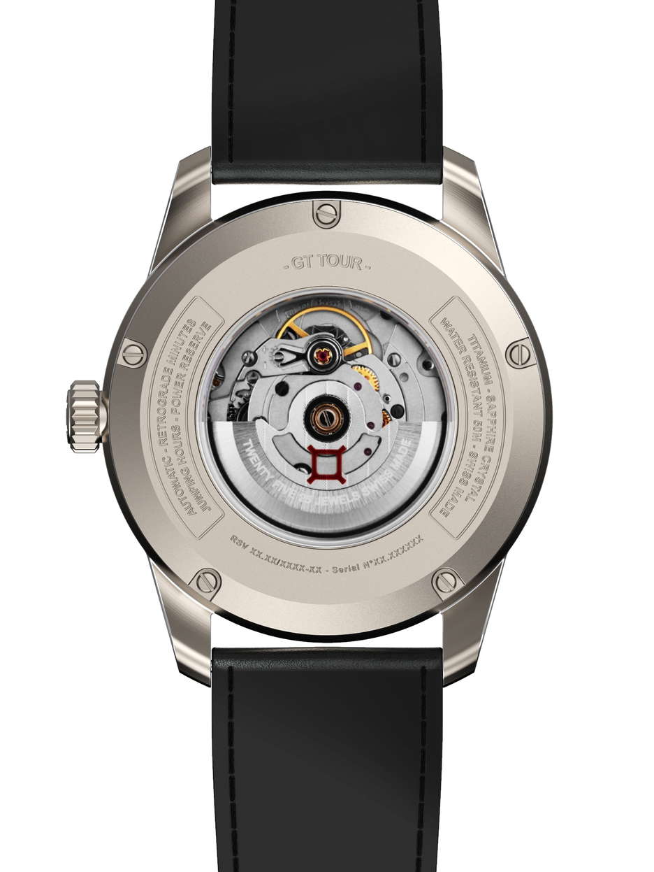 Picture this: you’re behind the wheel of a sleek sports car, pushing it to the limit. That feeling of pure speed and precision, with every unnecessary detail stripped away – that’s the essence of the GT Tour Skeleton. Now, imagine a dial that’s as clear as day, leaving you with an extraordinary view of the inside workings of the watch. And check out that retrograde minute hand, decked out in vibrant orange, like it’s straight out of a race car dashboard. The bridges are painted a deep, mysterious blue, making them stand out against the brushed steel. If you look closely, you’ll notice the perfectly blued screws and the intricate pattern on the differential wheels – a treat for racing enthusiasts. Now, let’s talk about innovation. The hour cartridge glows in white SuperLuminova, making sure you can check the time even in the darkest of nights. And the hour indication disc? It’s made of transparent Plexiglas, adding a touch of modern elegance to this racing-inspired timepiece. The GT Tour Skeleton comes in a beautiful wooden box, along with an extra NATO strap.
