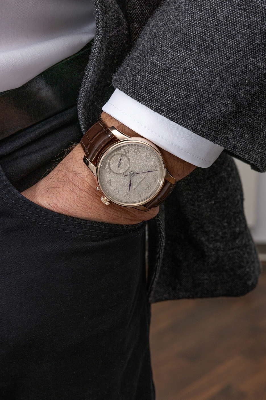 n celebration of its 15th anniversary, Moritz Grossmann introduces the unique TREMBLAGE XV Birthday Edition, a testament to the manufactory’s expertise in traditional engraving techniques. This exclusive timepiece features a dial finished with the tremblage engraving technique, where tiny back-and-forth movements of a burin create a rough, matte surface with a soft shimmer. The dial’s three-dimensional design is achieved by meticulously removing the background by hand, making the hour numerals, small seconds circle, and the historic ‘M. Grossmann’ logo appear to hover above the surface. This anniversary model also commemorates the manufactory’s history, with inscriptions ‘2008-2023′ and ’15’ subtly integrated into the dial, changing visibility with the light. The hands, annealed to a brown-violet hue, add to the watch’s handcrafted elegance, showcasing the skills honed over 15 years. Powering the watch is the hand-wound calibre 100.1, visible through the glass case back. This movement, made from untreated German silver, features a barrel bridge intricately grained for an even surface, with hand-bevelled edges for added shimmer. The balance and escape wheel cock showcase a hand-applied floral pattern, complemented by traditional polishing techniques. The TREMBLAGE XV Birthday Edition, encased in rose gold, is a one-of-a-kind piece, paired with a brown alligator leather strap. This unique timepiece reflects Moritz Grossmann’s commitment to blending fine mechanics with historical craftsmanship, marking a significant milestone in their history.