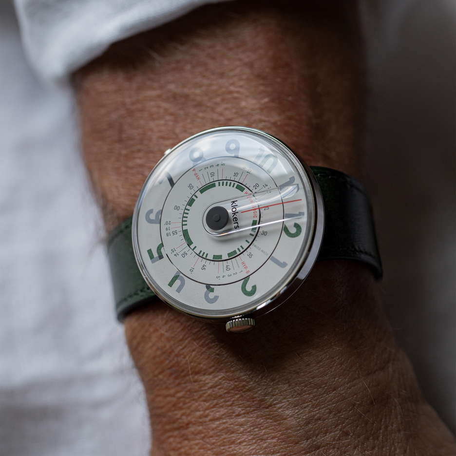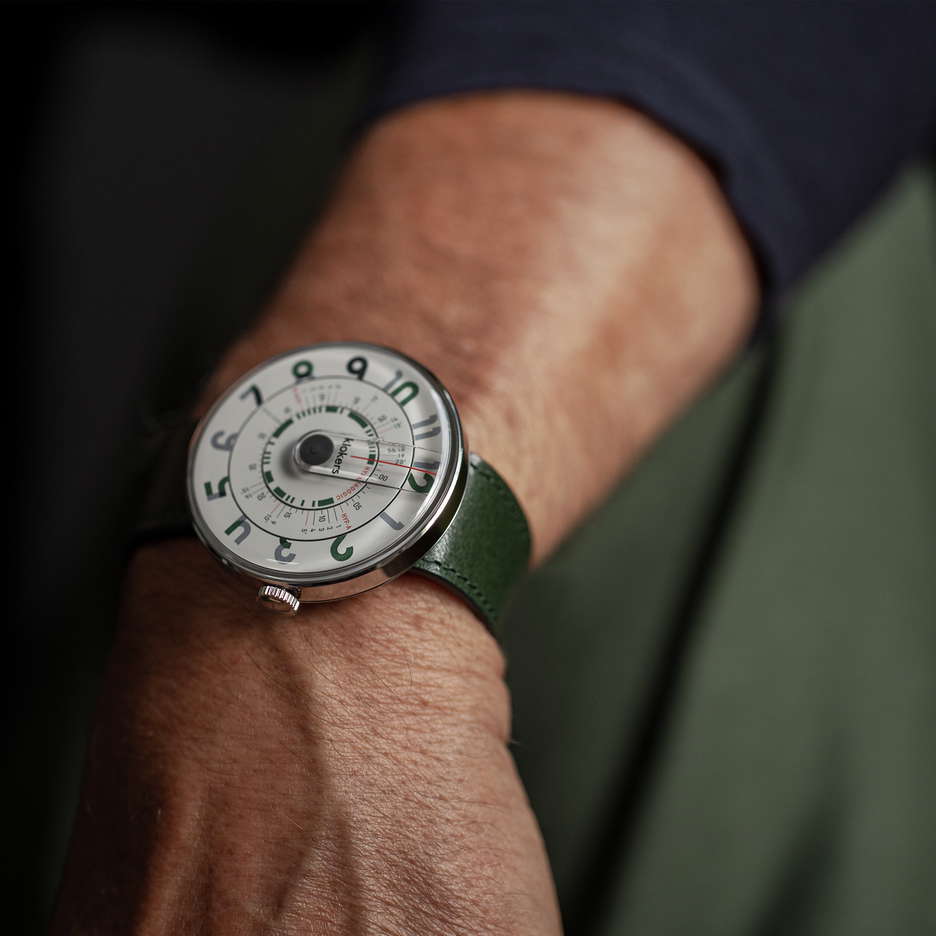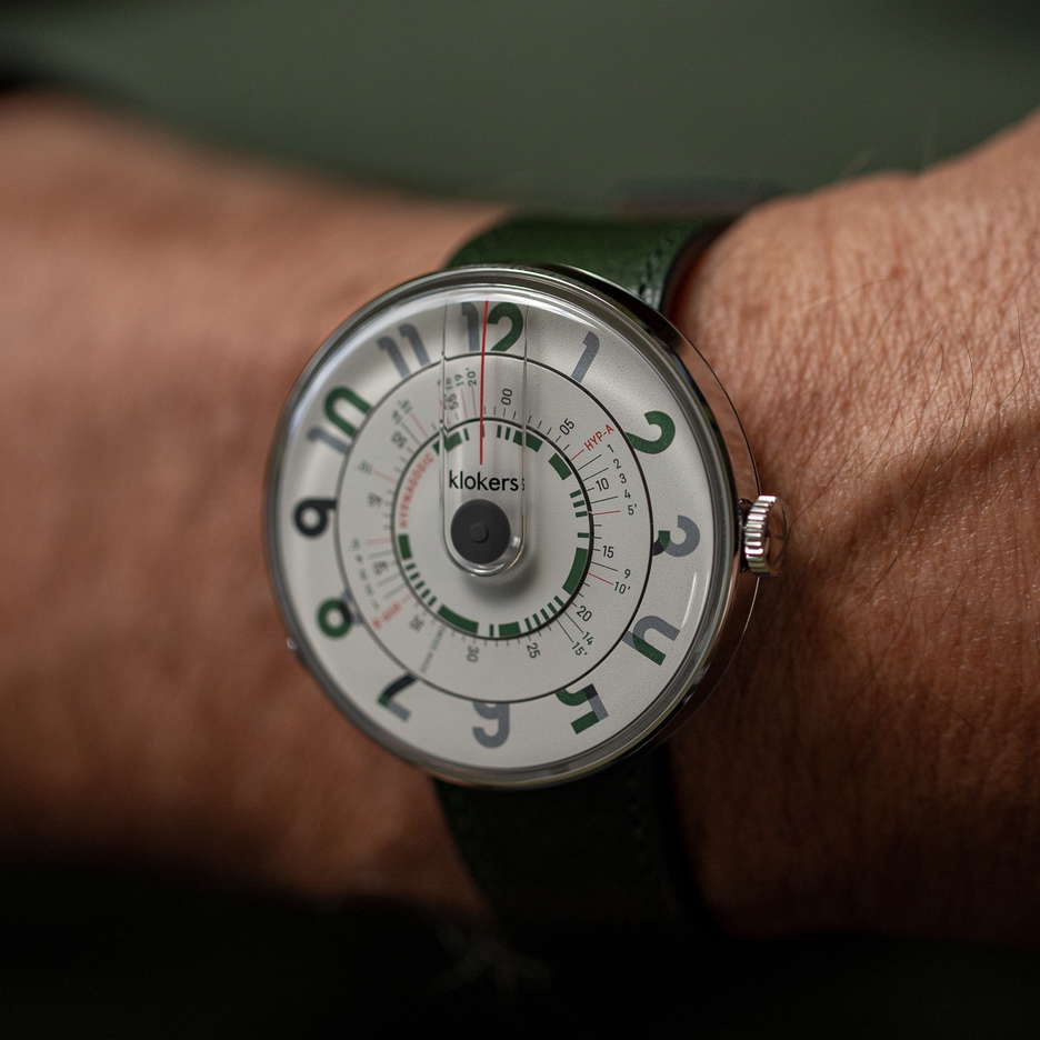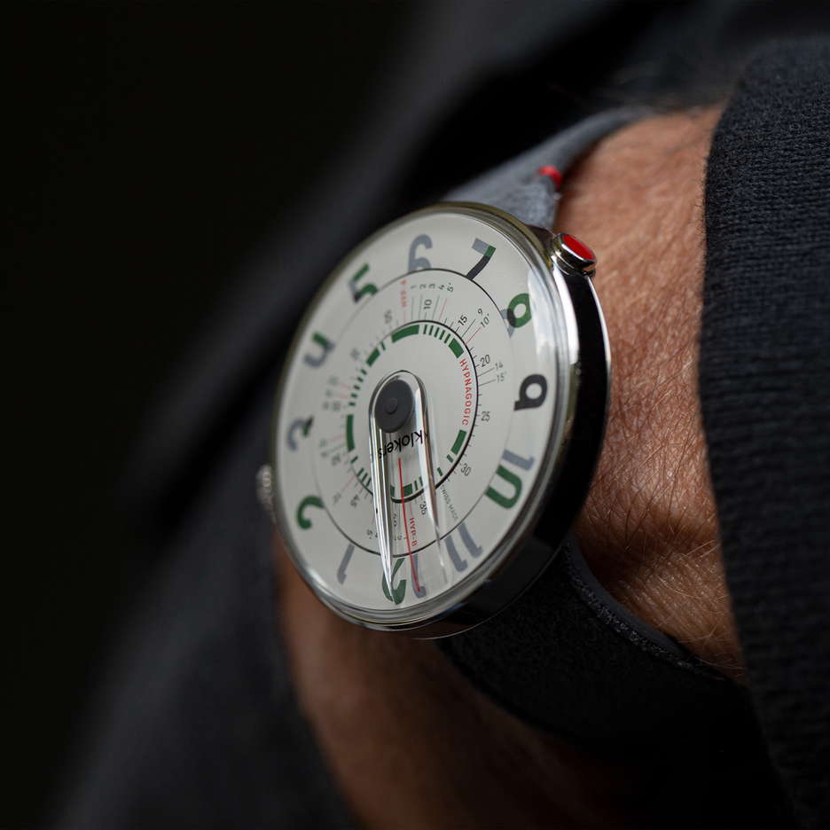 The KLOK 01 Hypnagogic collection caters to individuals who defy conventional norms and embrace a lifestyle of freedom, culture, innovation, and uniqueness. This collection is a tribute to those who, like Beethoven and Steve Jobs, have utilized the creative potential of the hypnagogic state – the semi-conscious moments before and after deep sleep that have inspired many great artists, scientists, and thinkers. This Swiss-made timepiece, devoid of traditional hands, features a polished stainless-steel case with a broad wheelbase and a specially designed base. The main disc displays time with hour figures, crafted in slightly raised pad printing in dark green and warm grey. The dial’s typography exudes calm and tranquility. A unique feature of the minute disc is its hypnagogic function, represented by a series of symbols. These allow the wearer to customize their nap duration – options include HYP A and HYP B settings for 5, 10, 15, or 20 minutes of altered consciousness. At the center of the dial, a raised grey dot acts as a walking indicator, tracking the passage of time. And you can easily change the strap with Kloker’s patented system that allows the watch head to be easily detached from the strap. The KLOK 01 Hypnagogic comes with a Hypnagogic Memobook designed to record your creative, hypnagogic sleep experiences. This handbook, a collaboration with the Nantes-based Calepino Company, is made using Heidelberg presses and vegetable ink. It is hand-made in France from 100% recycled materials. The KLOK 01 Hypnagogic is available in various colors and is compatible with a wide range of straps and accessories, ensuring that it can be personalized to fit any style or preference.