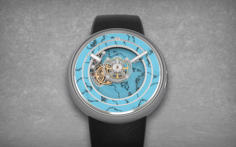 The KS 05 collection marks Kross Studio’s venture into timepieces beyond its entertainment partnerships, showcasing their engineering prowess. The collection features the world’s only central floating tourbillon timepieces, boasting the caliber KS 7’005 movement with 220 components, 27 jewels, and a 120-hour power reserve. Made from grade 5 titanium, the ultra-lightweight tourbillon cage weighs only 0.488g. The time display mechanism orbits around the tourbillon, driven by a planetary system mounted on ceramic ball bearings. The Grade 5 titanium case is seamlessly designed, with a hidden D-ring crown and a one-click interchangeable strap system. The domed crystal provides a panoramic view of the movement with anti-reflective, anti-UV, and anti-static treatments. The collection offers various dial variations, such as aventurine glass or natural stones, each serving to enhance legibility and showcase the tourbillon. Available in Grade 5 titanium or a striking version in 18-karat red gold, both offer the option of being set with 281 pavé-set diamonds, totaling around 5.09 carats. Each variation is limited to 10 numbered pieces, ensuring every watch becomes a unique and exclusive masterpiece.