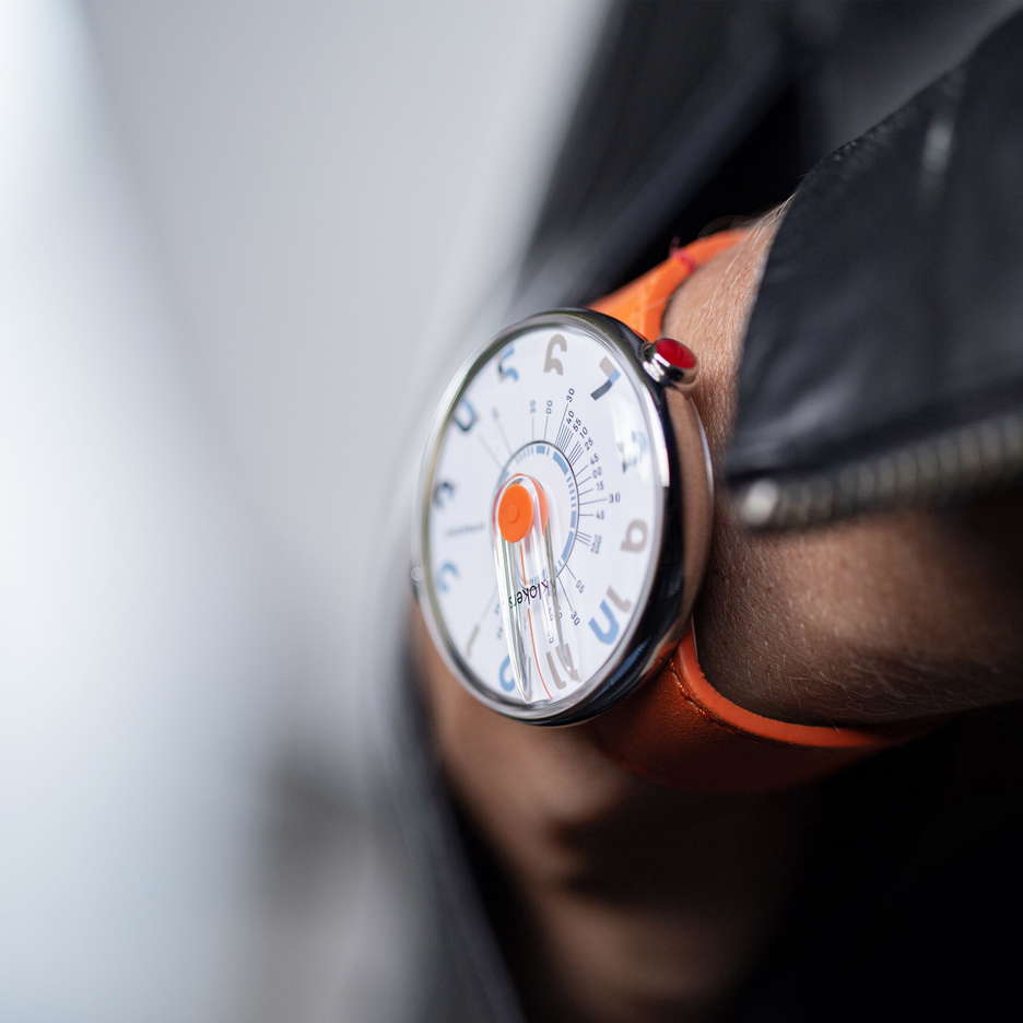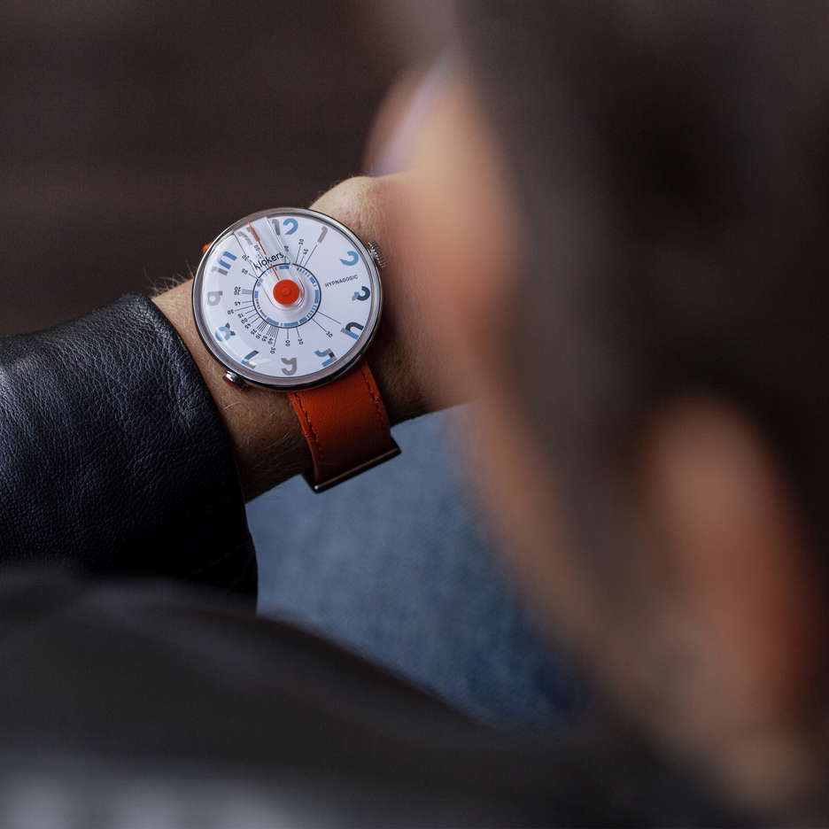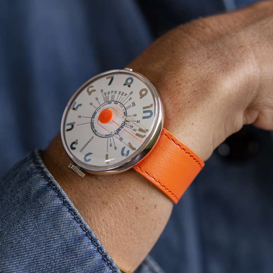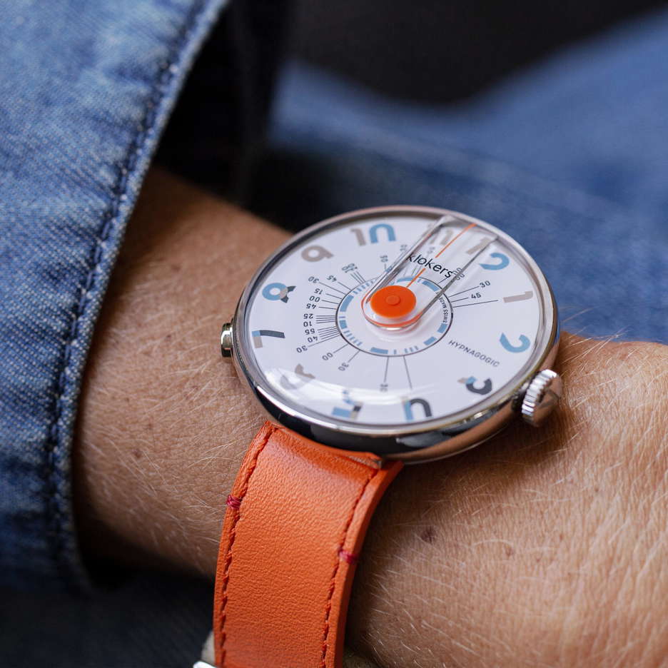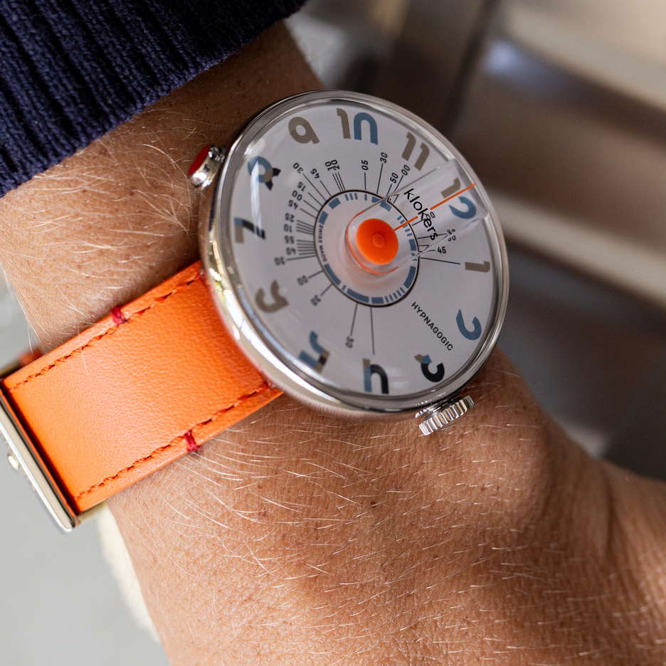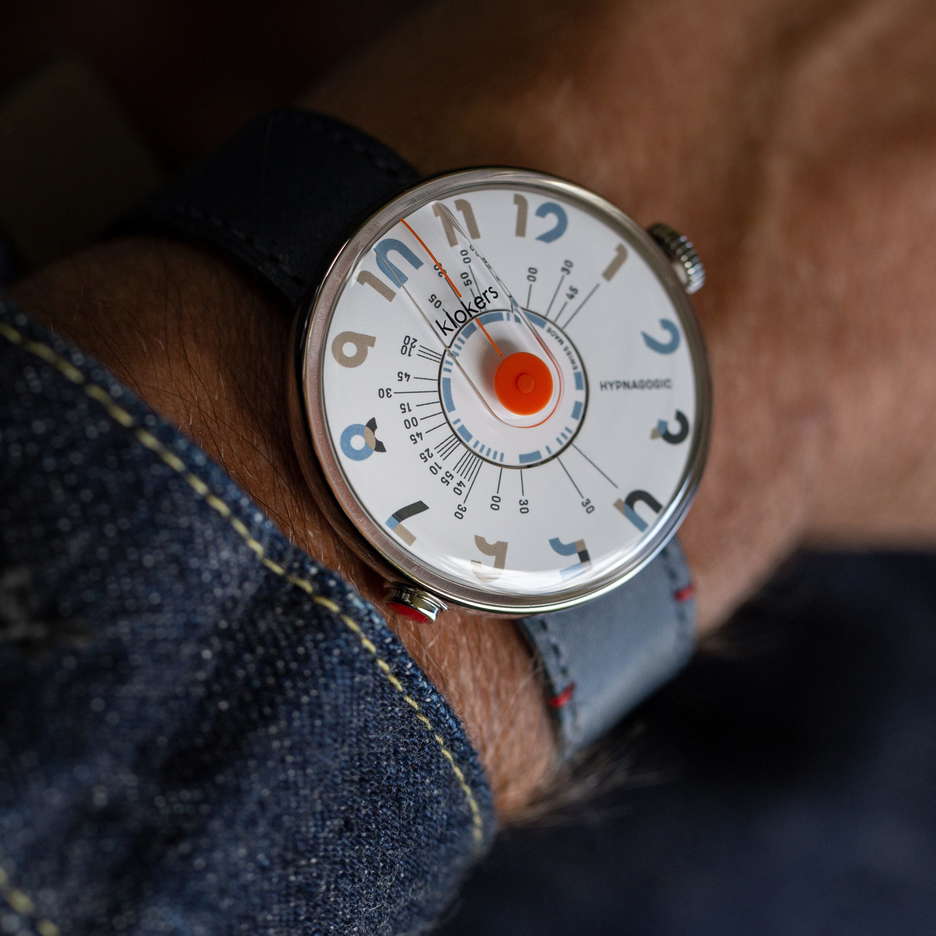 The KLOK 08 Hypnagogic collection caters to individuals who defy conventional norms and embrace a lifestyle of freedom, culture, innovation, and uniqueness. This collection is a tribute to those who, like Beethoven and Steve Jobs, have used the creative potential of the hypnagogic state – the semi-conscious moments before and after deep sleep that have inspired many great artists, scientists, and thinkers. This Swiss-made timepiece, devoid of traditional hands, features a polished stainless-steel case with a broad wheelbase and a specially designed base. The main disc displays time with hour figures, crafted in slightly raised pad printing in blue and warm grey. The dial’s typography exudes calm and tranquility. A unique feature of the minute disc is its hypnagogic function, represented by a series of symbols. These allow the wearer to customize their nap duration – options include HYP A and HYP B settings for 5, 10, 15, or 20 minutes of altered consciousness. At the center of the dial, a raised grey dot acts as a walking indicator, tracking the passage of time. And you can easily change the strap with Kloker’s patented system that allows the watch head to be easily detached from the strap. The KLOK 08 Hypnagogic comes with a Hypnagogic Memobook designed to record your creative, hypnagogic sleep experiences. This handbook, a collaboration with the Nantes-based Calepino Company, is crafted using Heidelberg presses and vegetable ink. It is hand-made in France from 100% recycled materials.