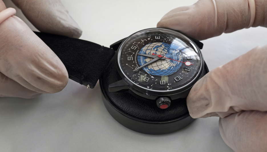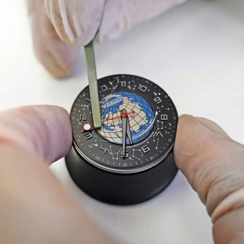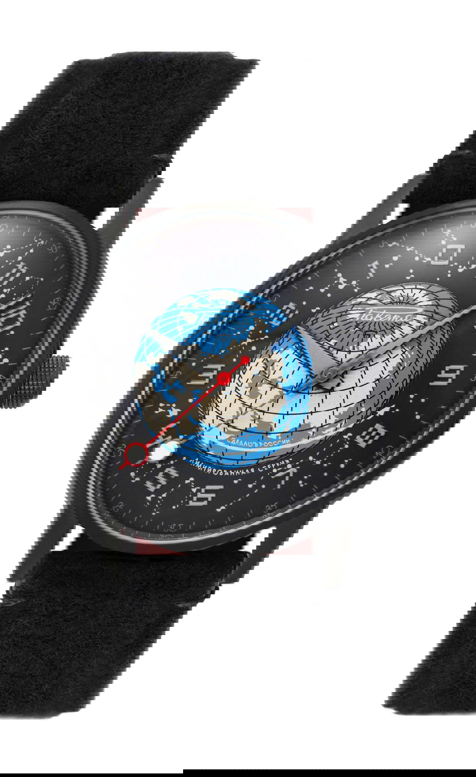 Ready to make a shift with this counterclockwise timepiece? Step into the next generation of watches, where time marches to the cosmic beat. Wearing this watch means breaking free from the age-old rule of reading time through clockwise motion. Beneath its classic façade and subtle design lies a revolutionary idea: time should flow in tune with the counterclockwise dance of the planets in our solar system. Take note that the second hand, featuring the Moon, also traces an unconventional path around the central Earth on the watch’s face. Peek through the case back, and you’ll discover an exquisitely crafted automatic movement, meticulously manufactured and assembled at the Raketa Watch Factory in Saint-Petersburg.