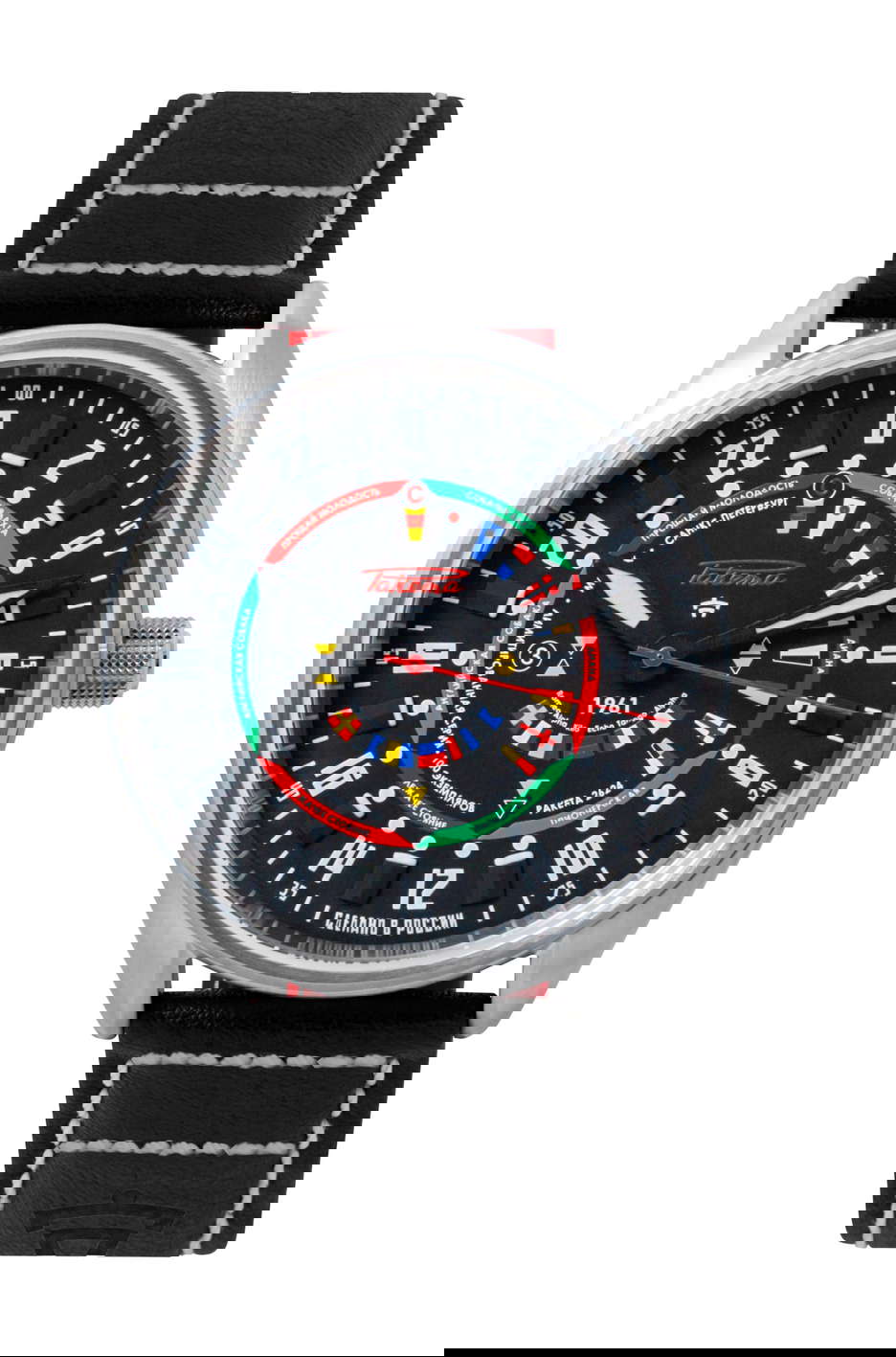 A limited edition of Russian Automatic Watches for people who love the sea. Nestled in the heart of Saint Petersburg, right next to the naval bases, the renowned Raketa Watch Factory has a rich history of crafting timepieces for the Russian Navy. The Raketa “Seaman” 0267 features a dial with maritime cardinal marks, serving as vital indicators of danger zones. Additionally, they proudly display the names of the ‘naval watches,’ marking the times when Russian sailors stand duty on board their ships. The words ‘Raketa’ and numerals ‘0’ to ‘9’ are elegantly rendered in the flags of the ‘naval alphabet,’ the very code used for ship-to-ship communication. The inclusion of a 24-hour dial empowers wearers to utilize their timepiece as a solar compass, aiding navigation when the ship’s electronic compass falters. Built to endure the most demanding maritime conditions, the Raketa “Seaman” 0267 boasts a robust case that can withstand pressures of up to 20 ATM, equivalent to submersion to a depth of 200 meters, ensuring complete waterproofness. At the heart of the Raketa “Seaman” 0267 lies the highly dependable ‘Raketa – Avtomat’ automatic movement, meticulously crafted in-house at the Raketa Watch Factory in Saint Petersburg. The movement showcases a distinctive design inspired by archival Soviet imagery, combining reliability with historical charm.