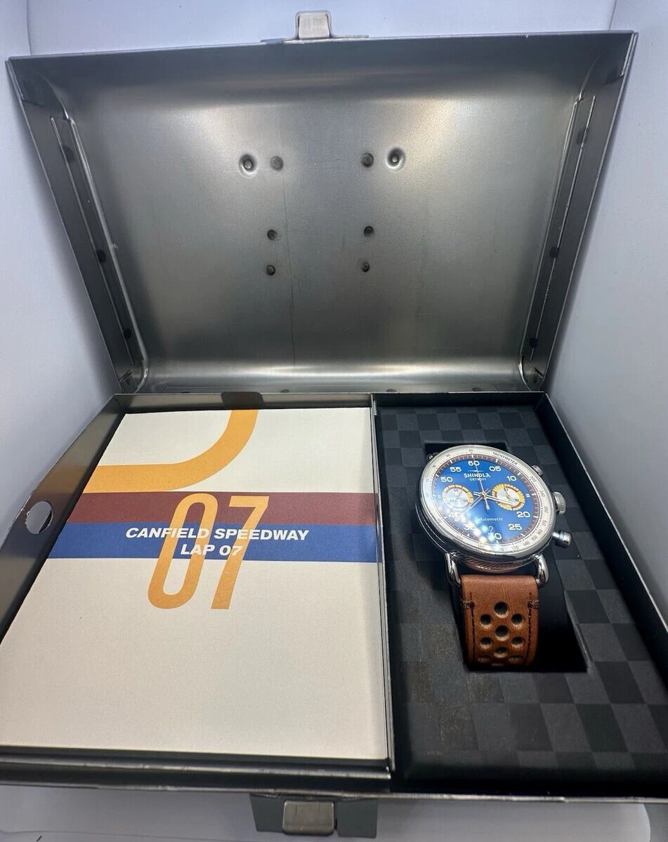 Shinola Canfield Speedway 44mm Blue Dial Brown Leather Band Watch S0120291079