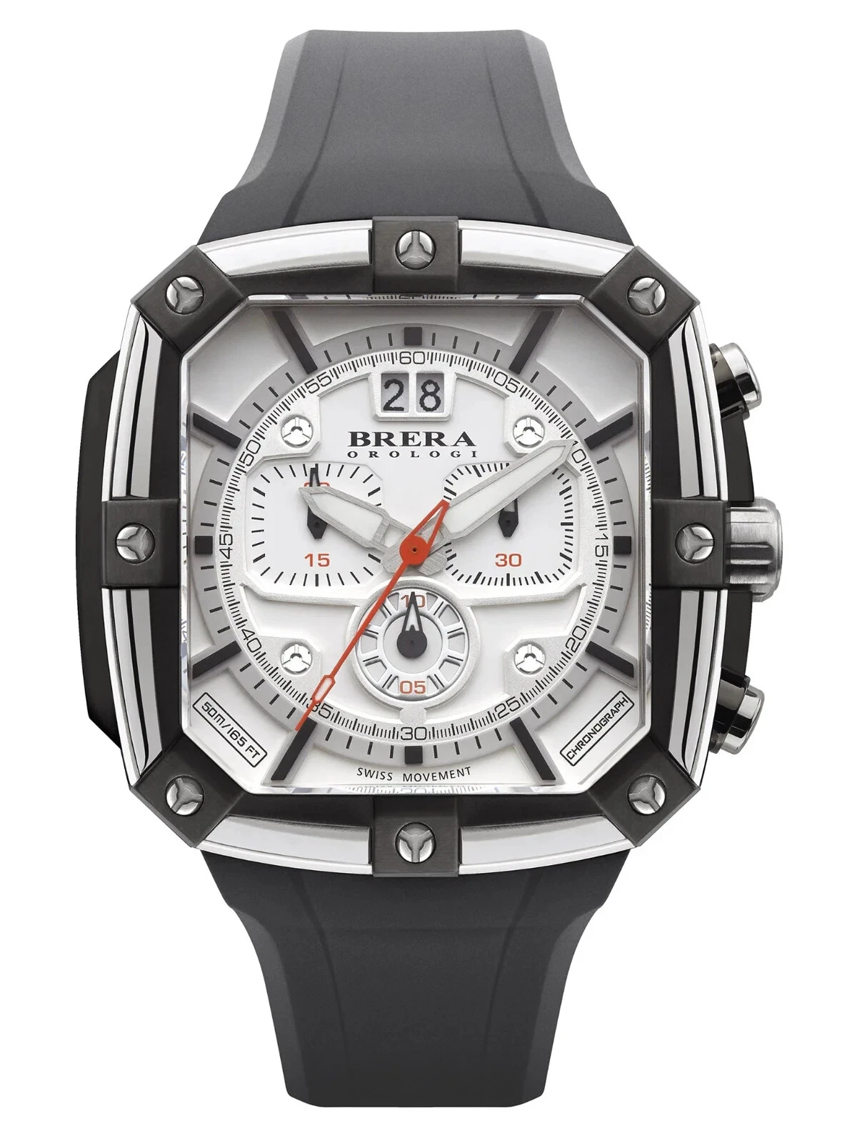 NEW Brera Orologi SUPERSPORTIVO SQUARE Mens Swiss White 48mm Watch BRSS2C4604