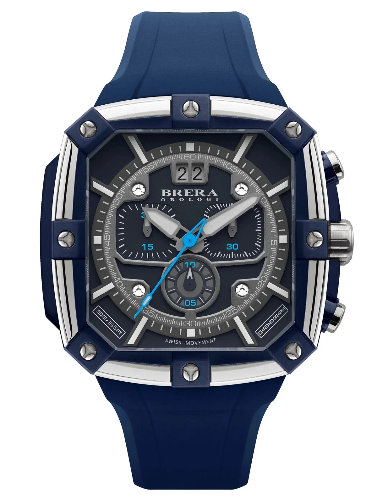 NEW Brera Orologi SUPERSPORTIVO SQUARE Mens Swiss Blue 46mm Watch BRSS2C4606