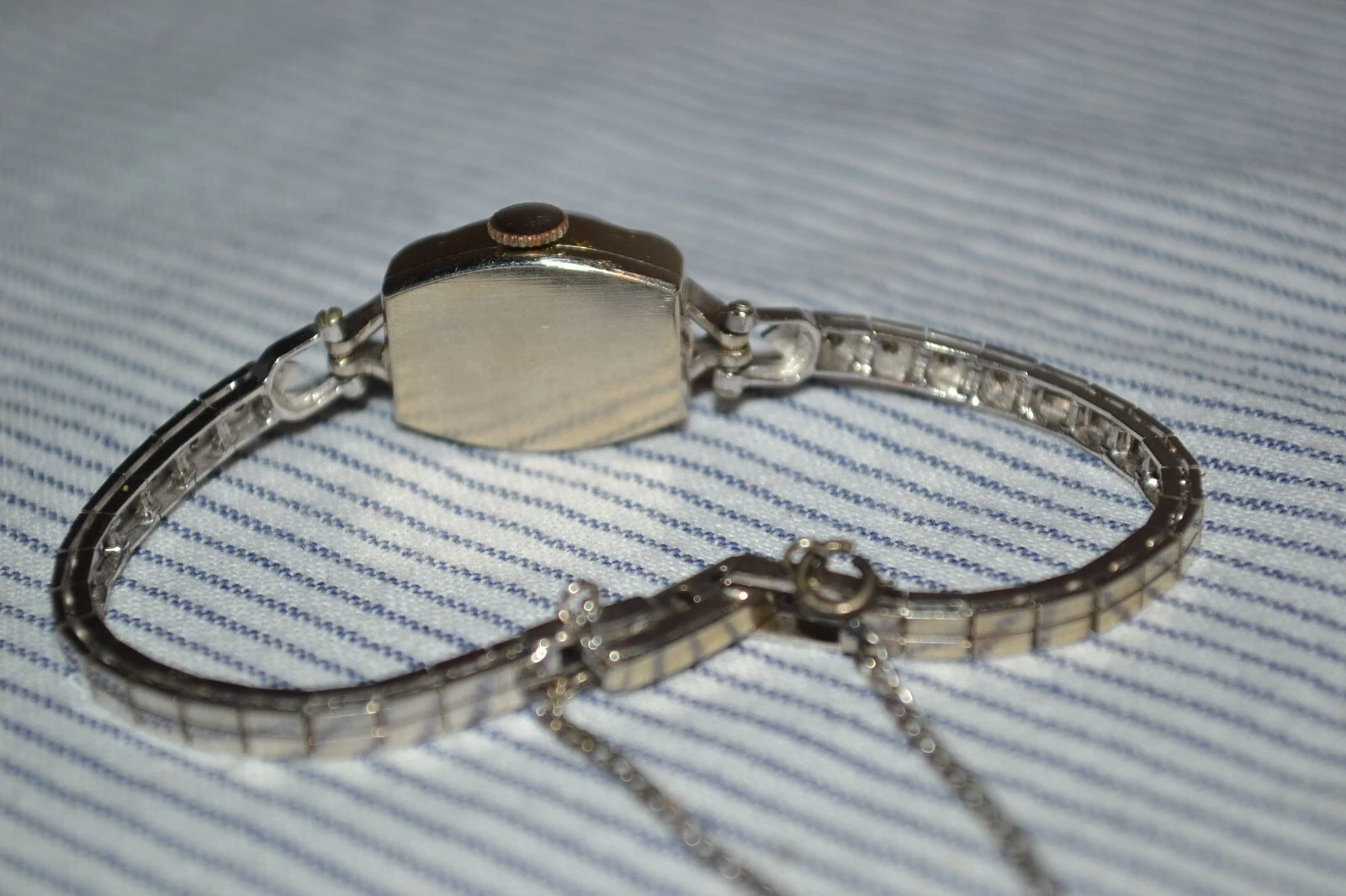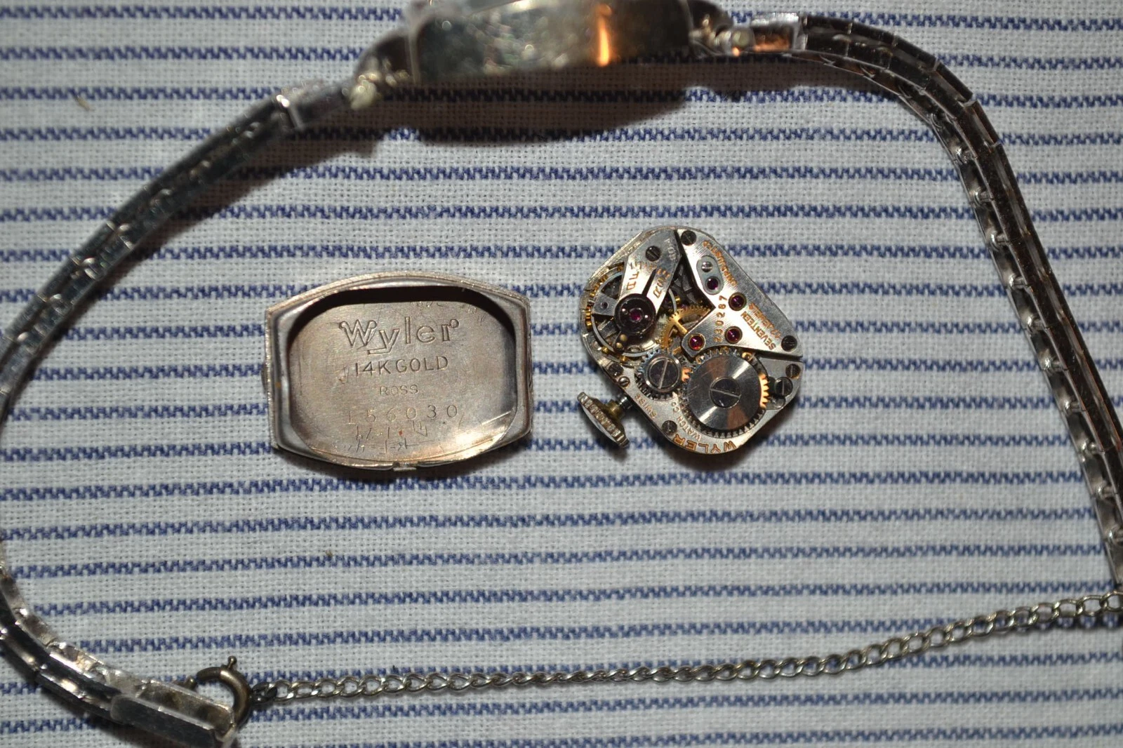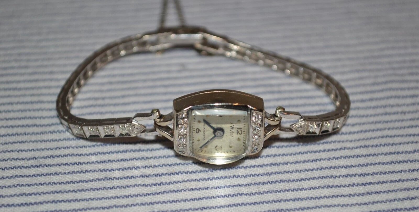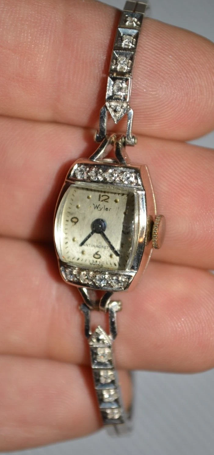 12g Solid 14K White Gold Bracelet 60s Vintage WYLER Womens Watch 14 Diamonds