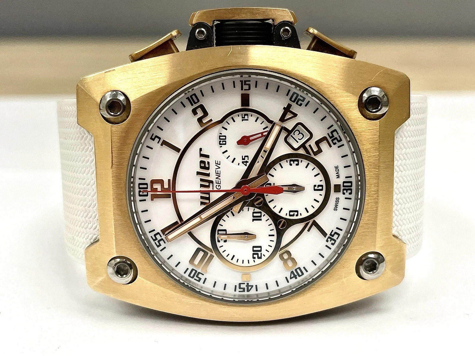 Wyler Chronograph 18kt Rose Gold 'White' Incaflex 100.2 43MM