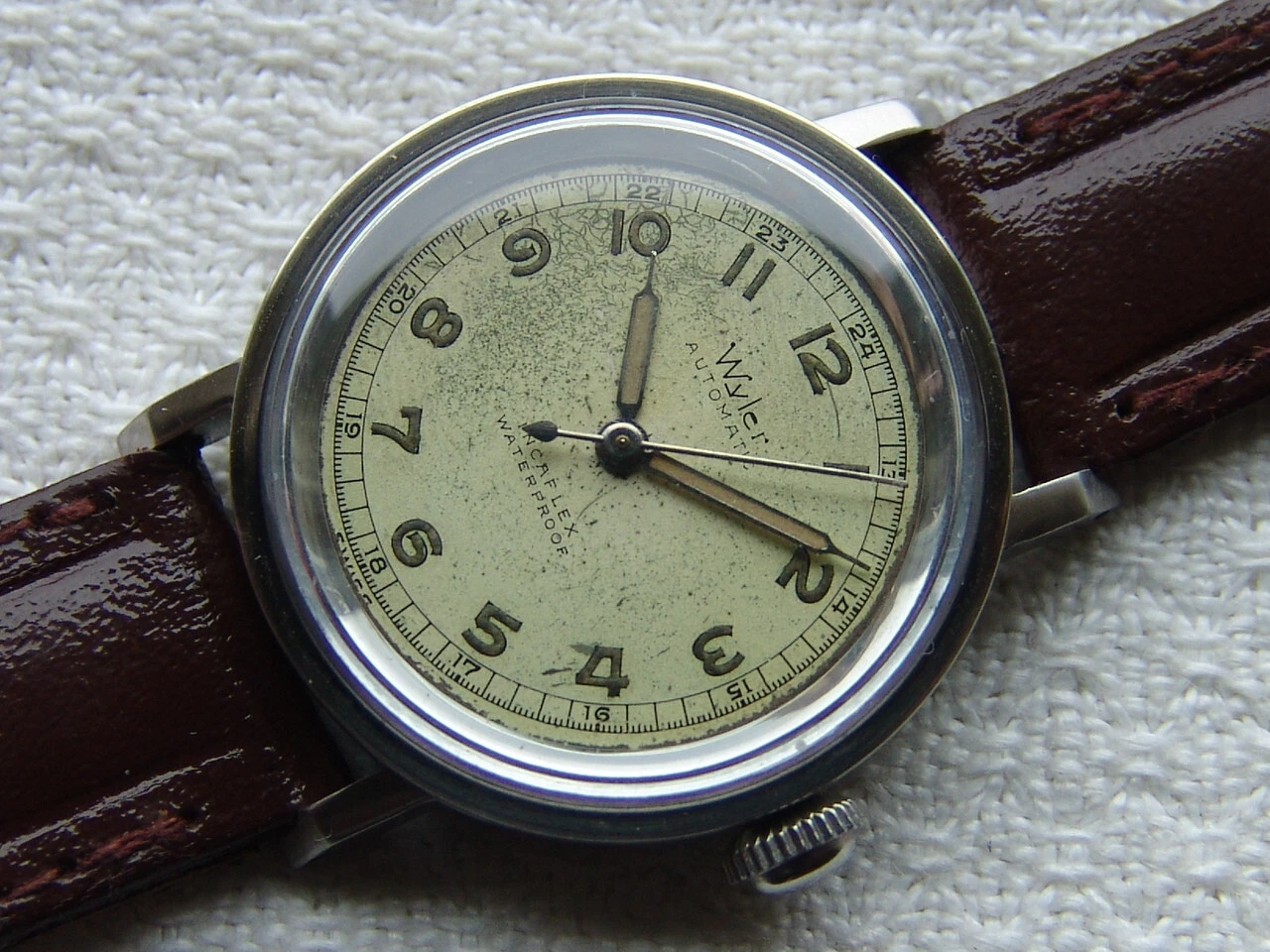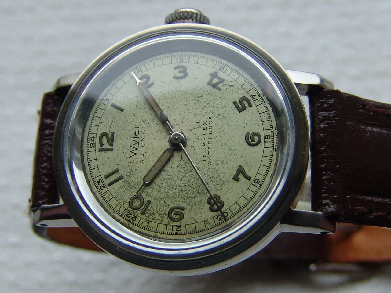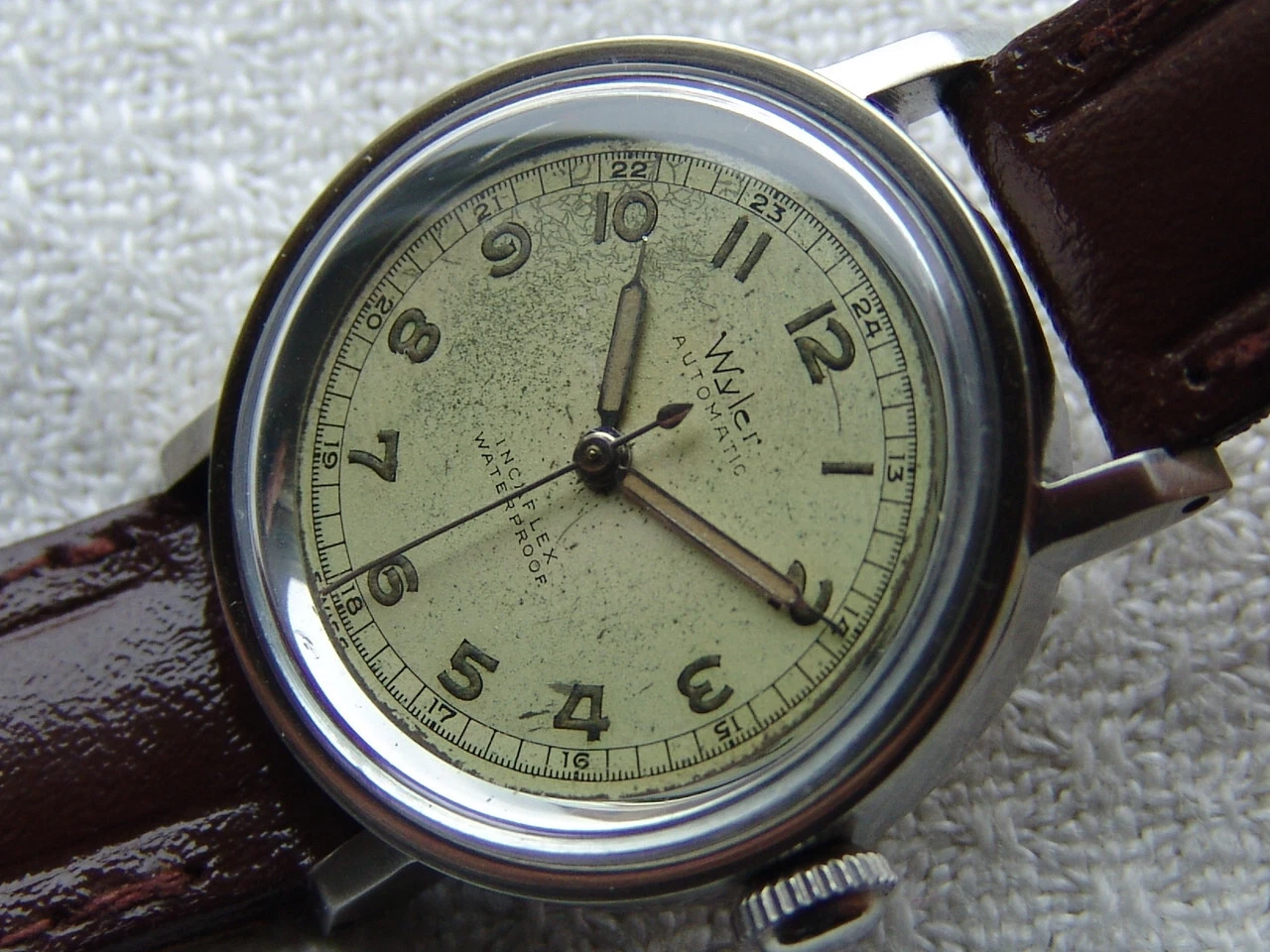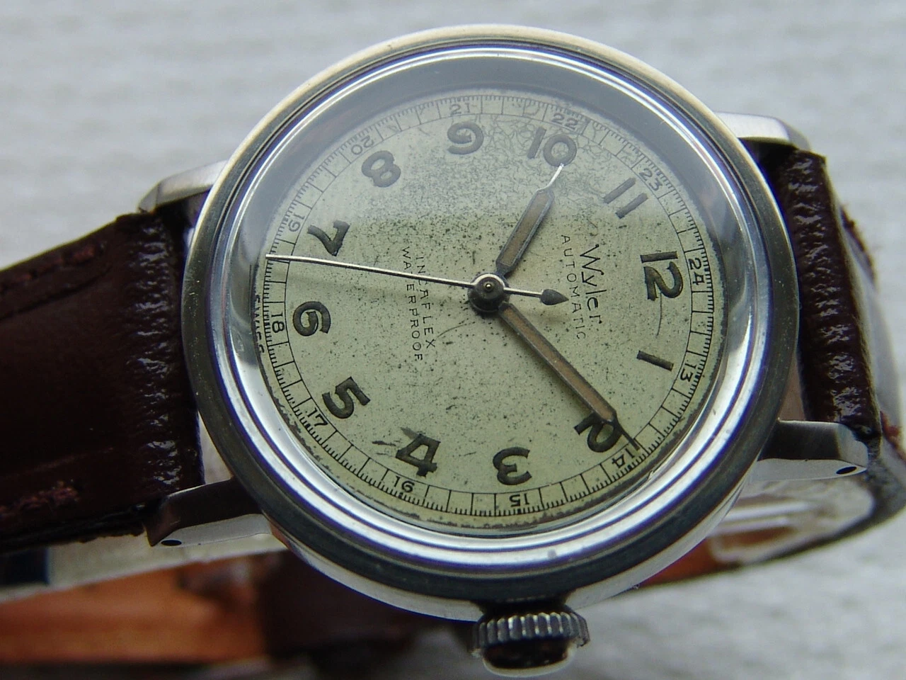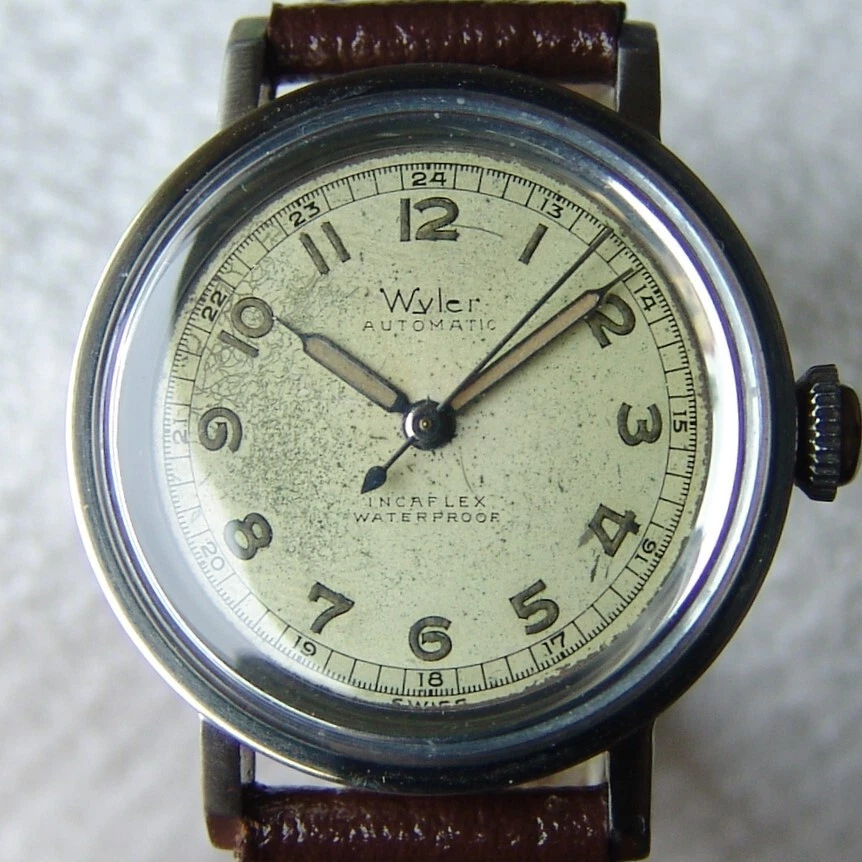 Mens WWII period Vintage WYLER automatic military steel WATCH GOOD CONDITION