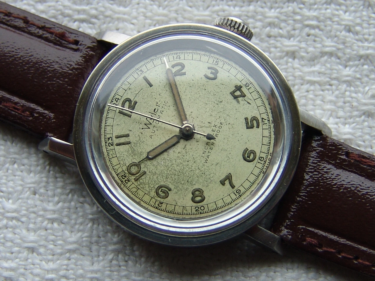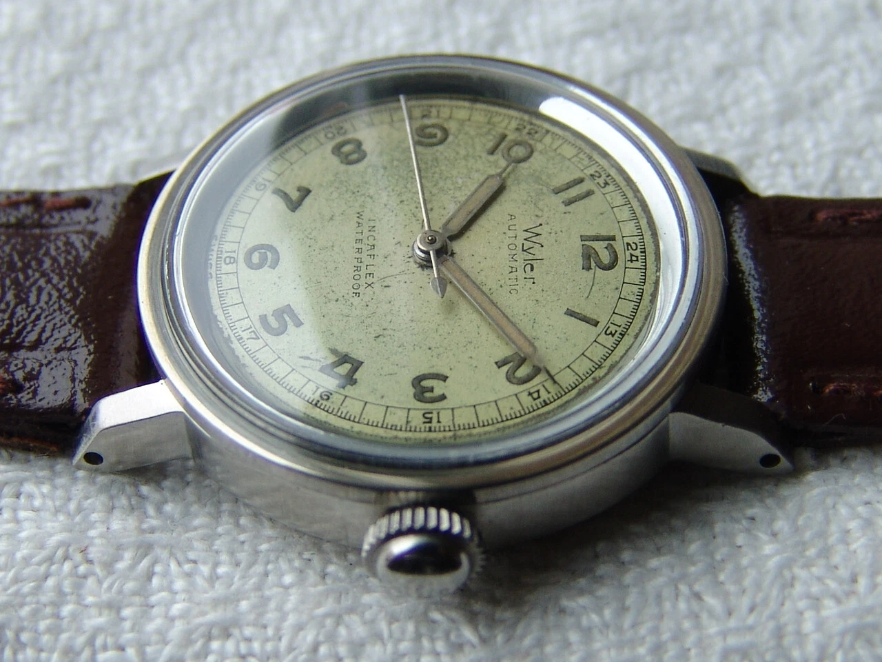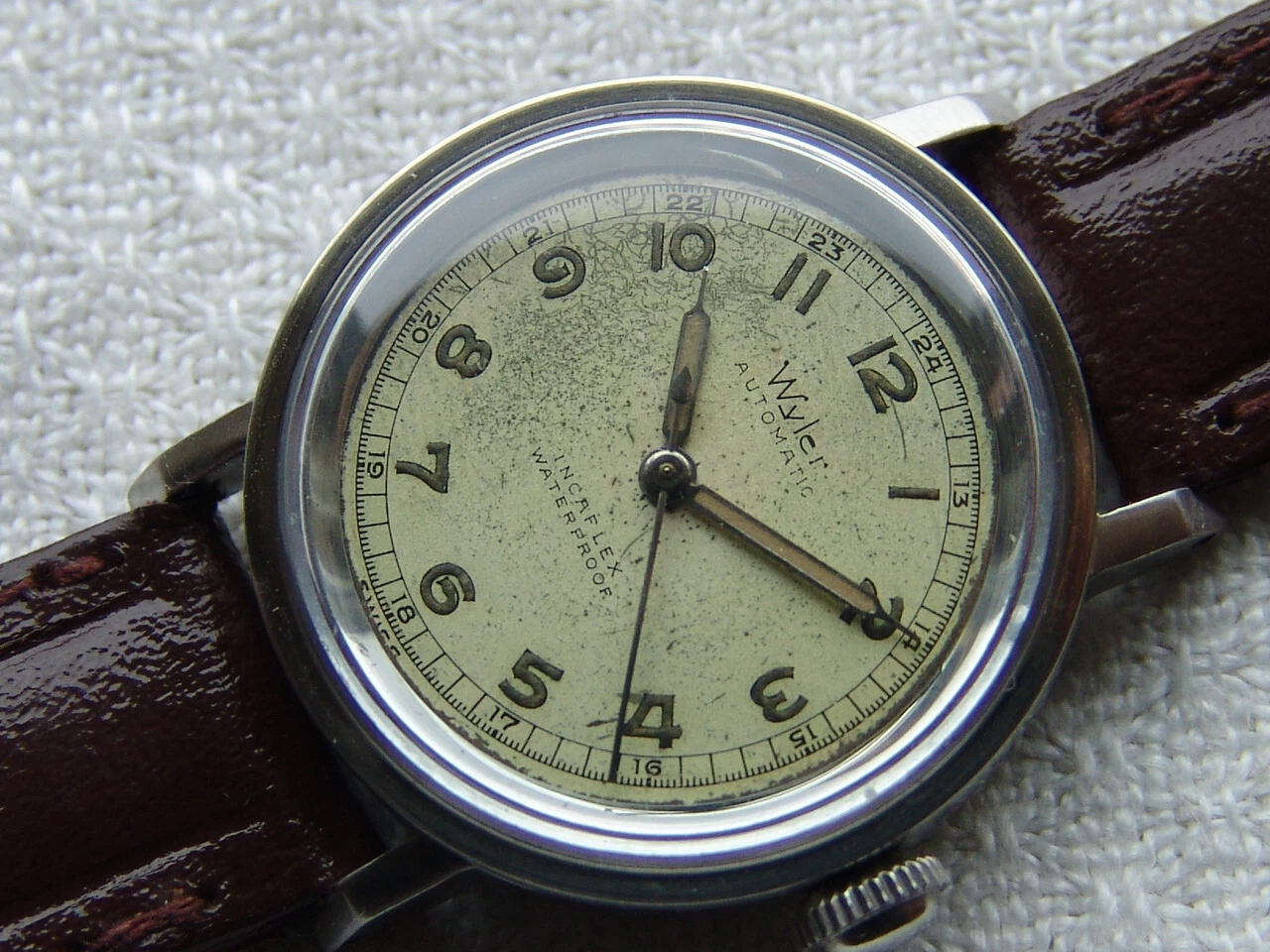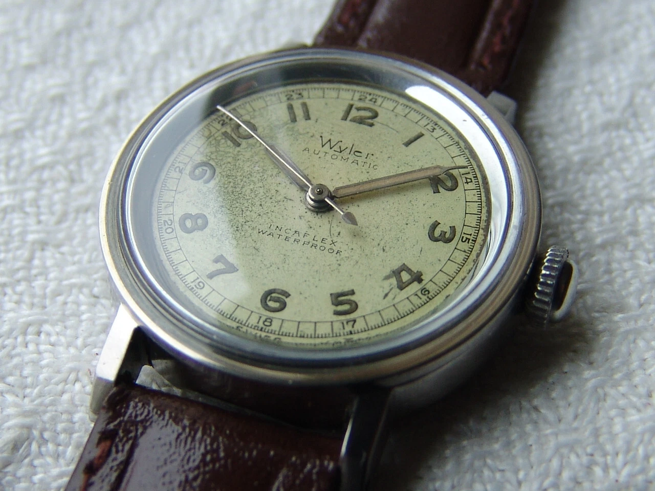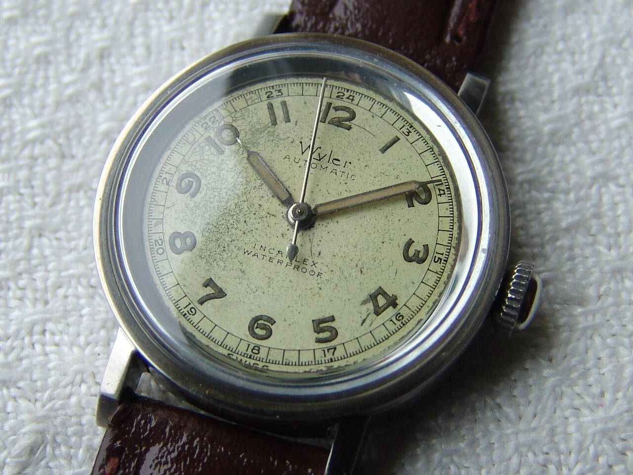 Mens WWII period Vintage WYLER automatic military steel WATCH GOOD CONDITION