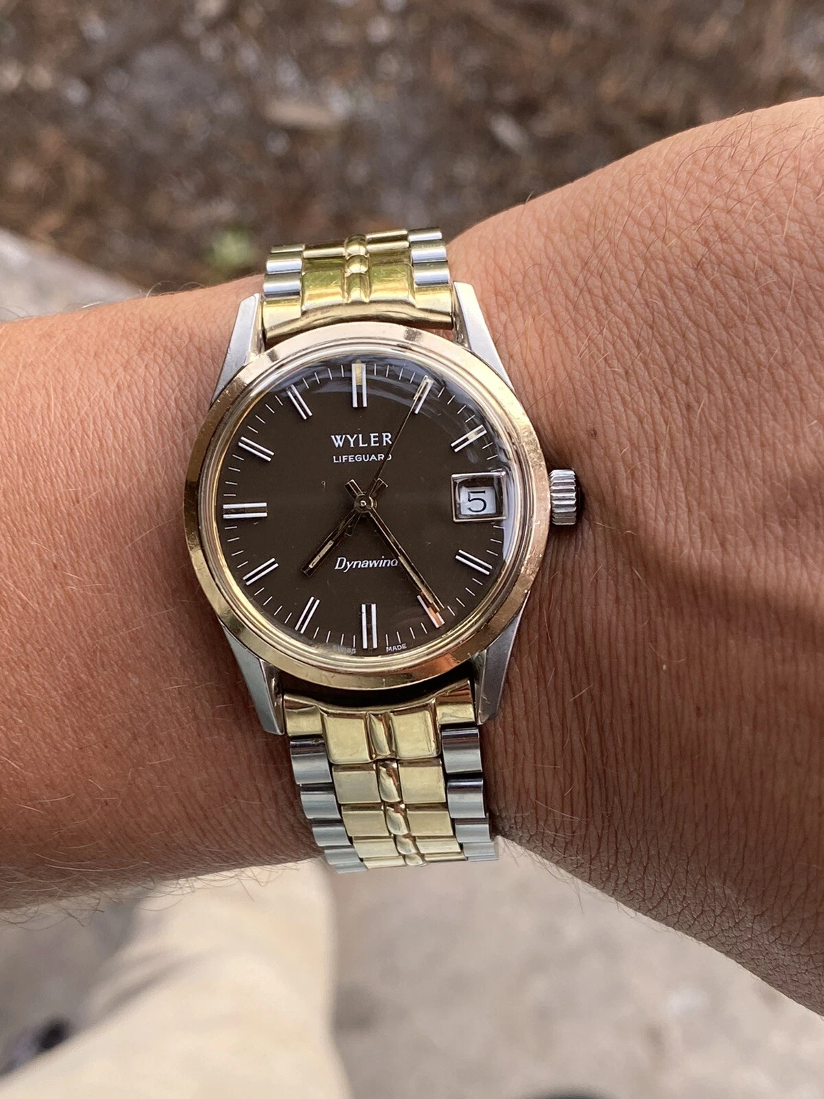 Vintage Wyler Lifeguard Rose Bezel Chocolate Gold Dial + JB Bracelet