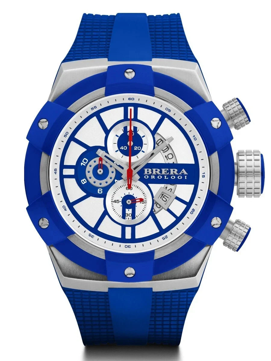 NEW Brera Orologi SUPERSPORTIVO Italian Blue White IP 48mm Mens Watch BRSSC4917