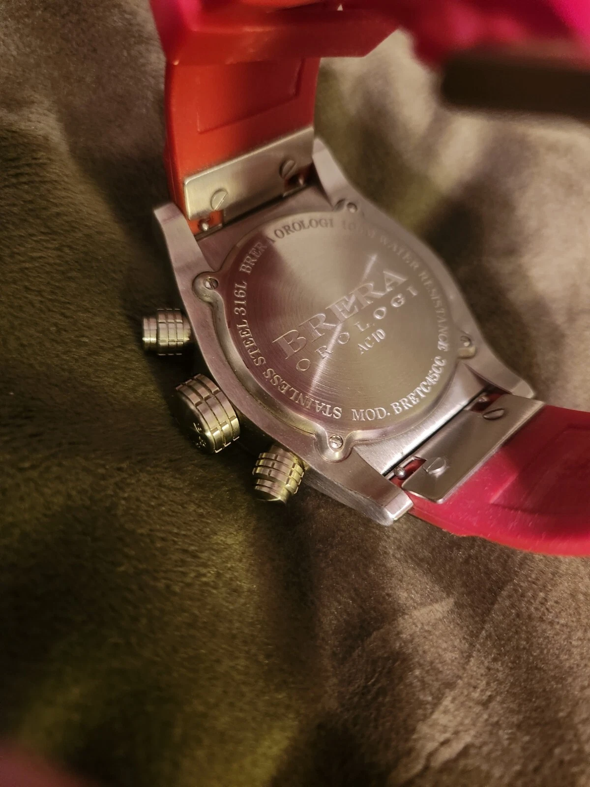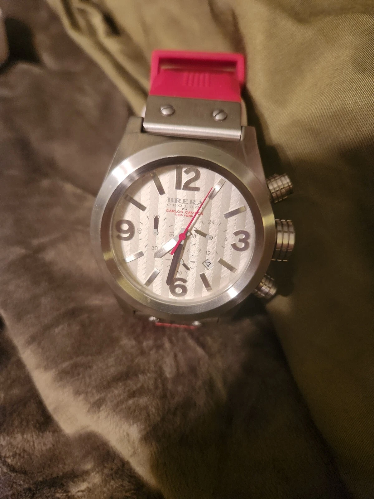 BRERA OROLOGI Bretc45 Silver Wristwatch Custom Red Band Carlos CAMPOS SPECIAL