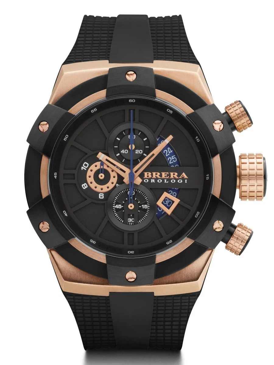 NEW Brera Orologi SUPERSPORTIVO Italian Black Rosegold IP Mens Watch BRSSC4902