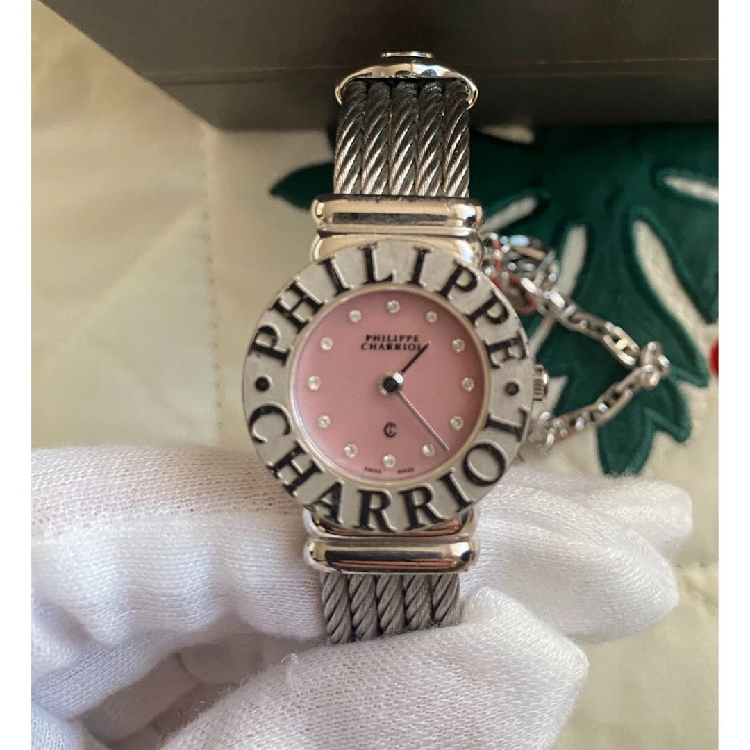 Used Working Philippe Charriol Saint-Tropez Pink Shell Dial Silver925 Quartz JP